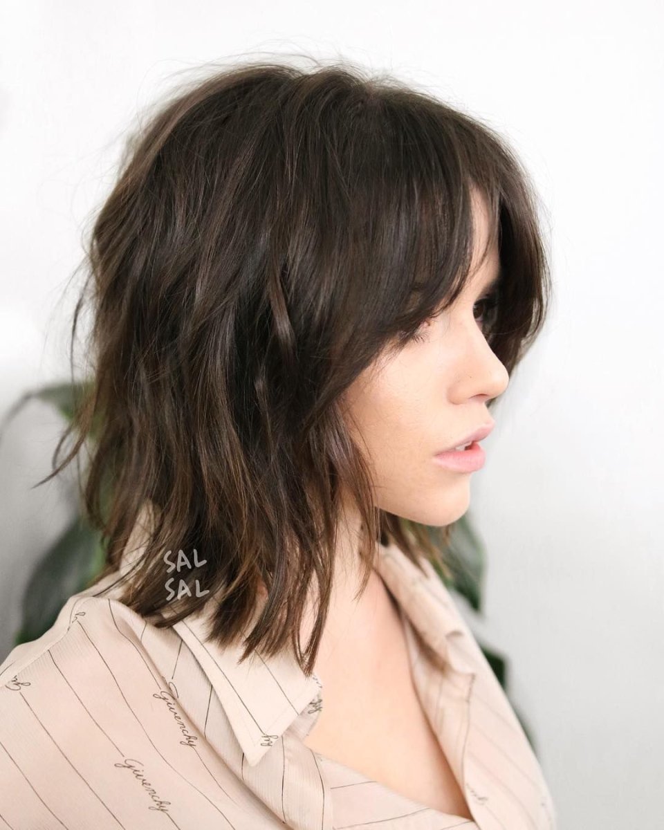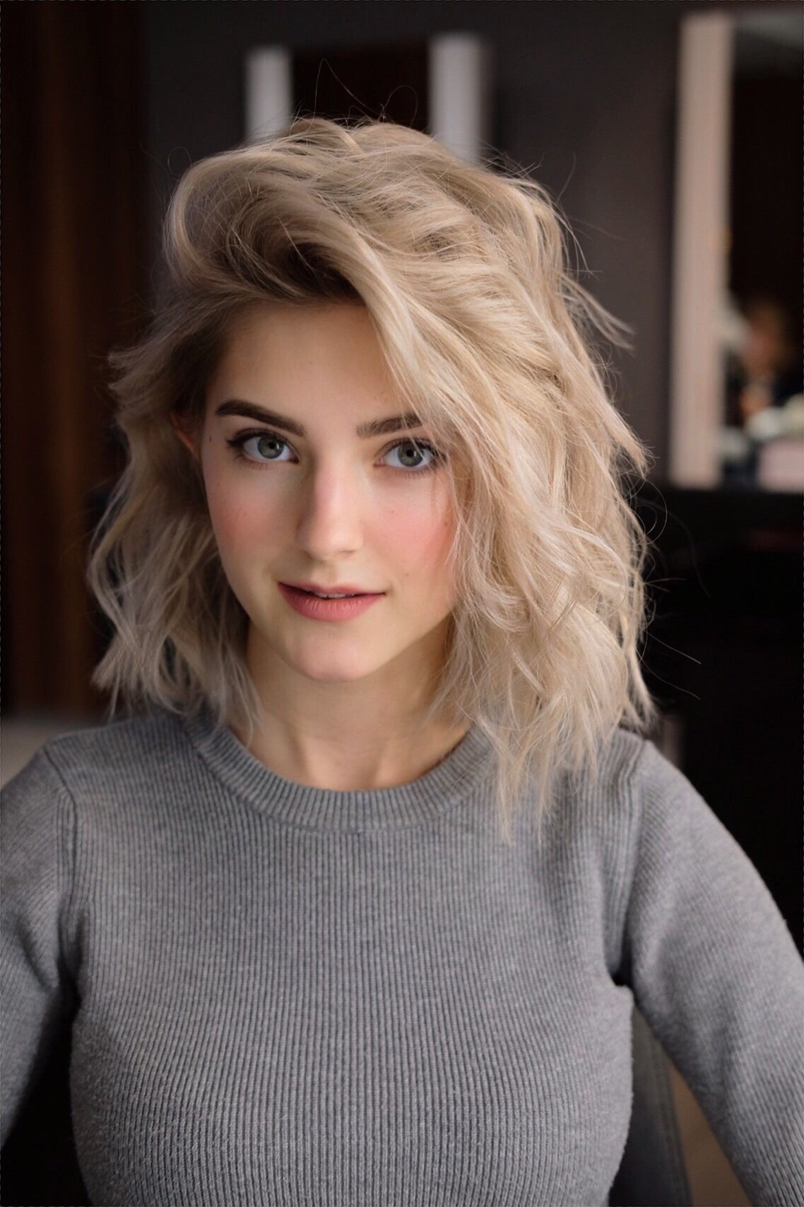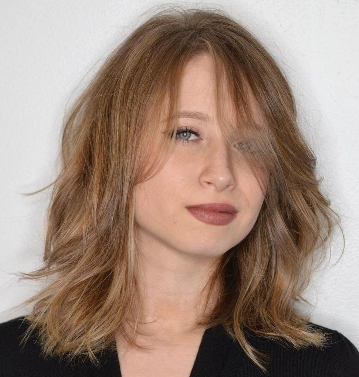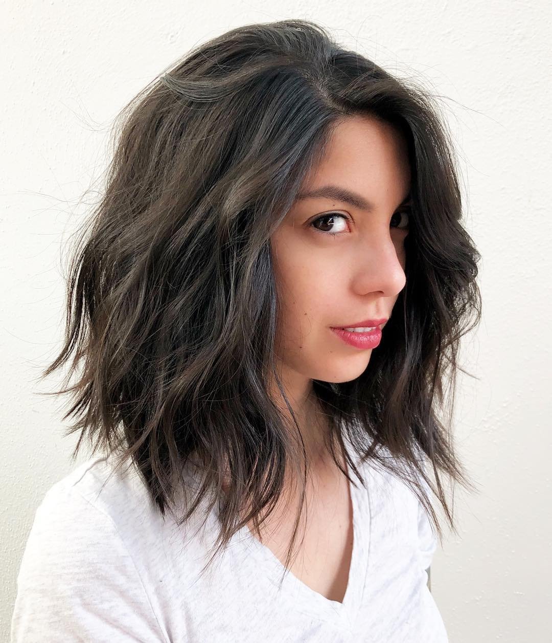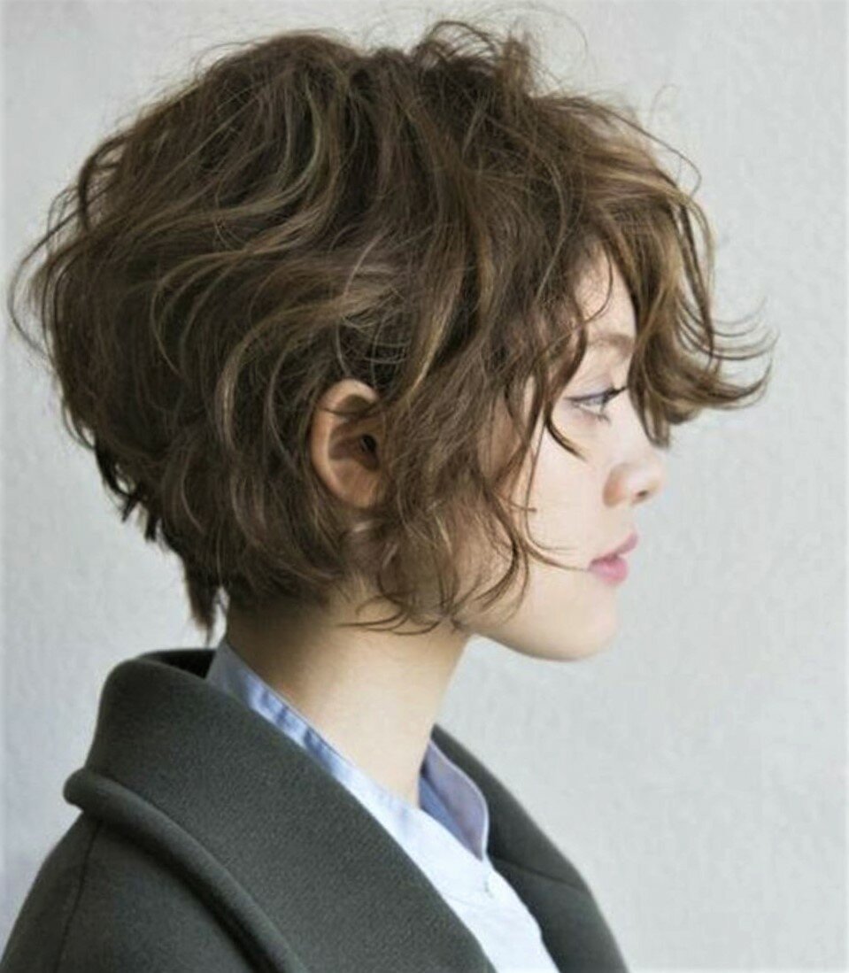 Градуированный Боб на средние вьющиеся волосы с челкой