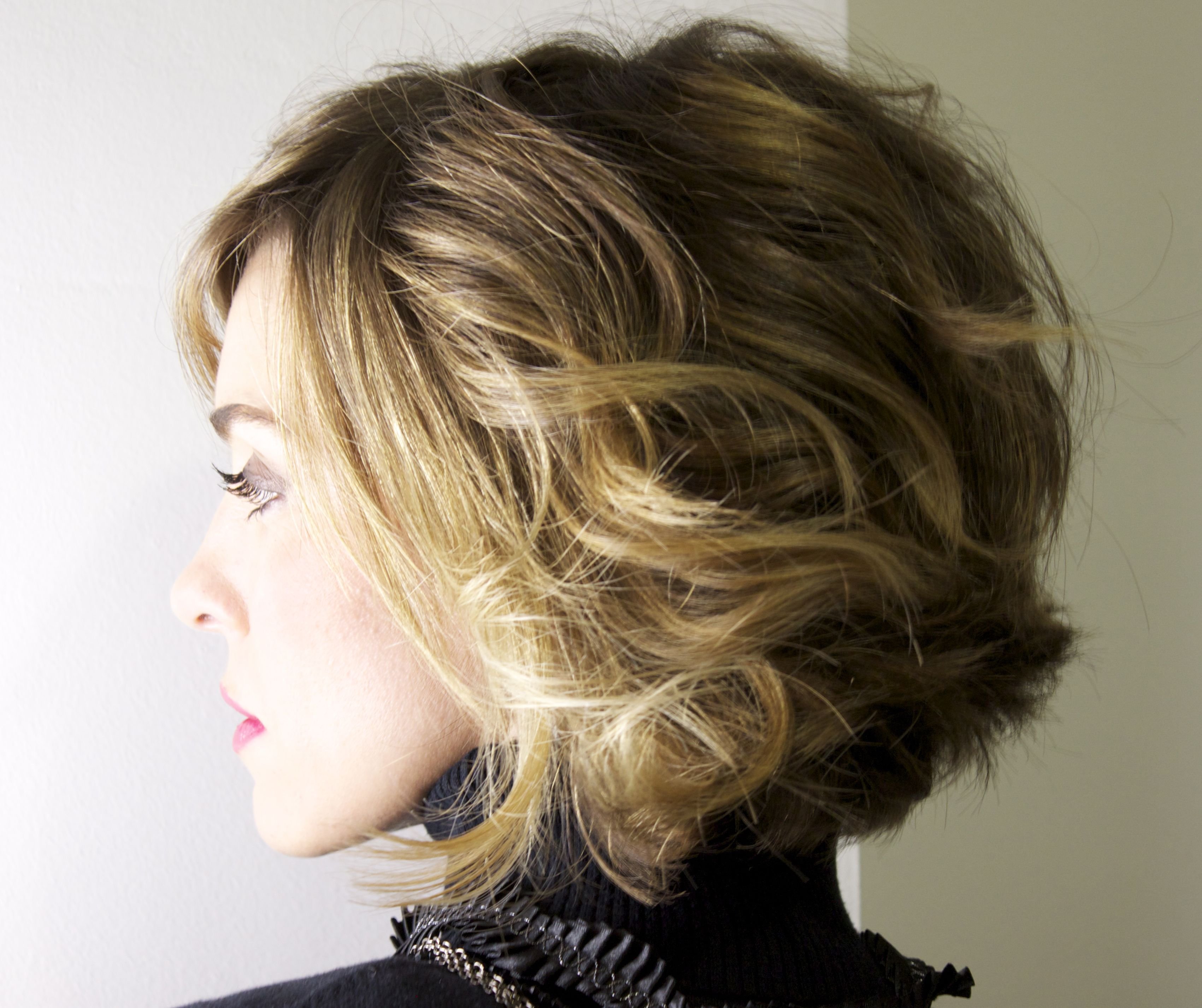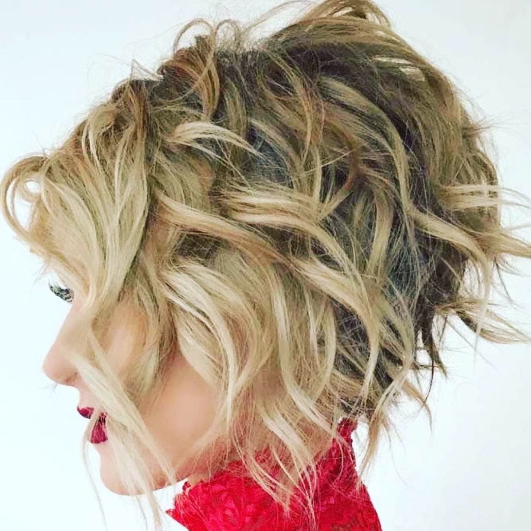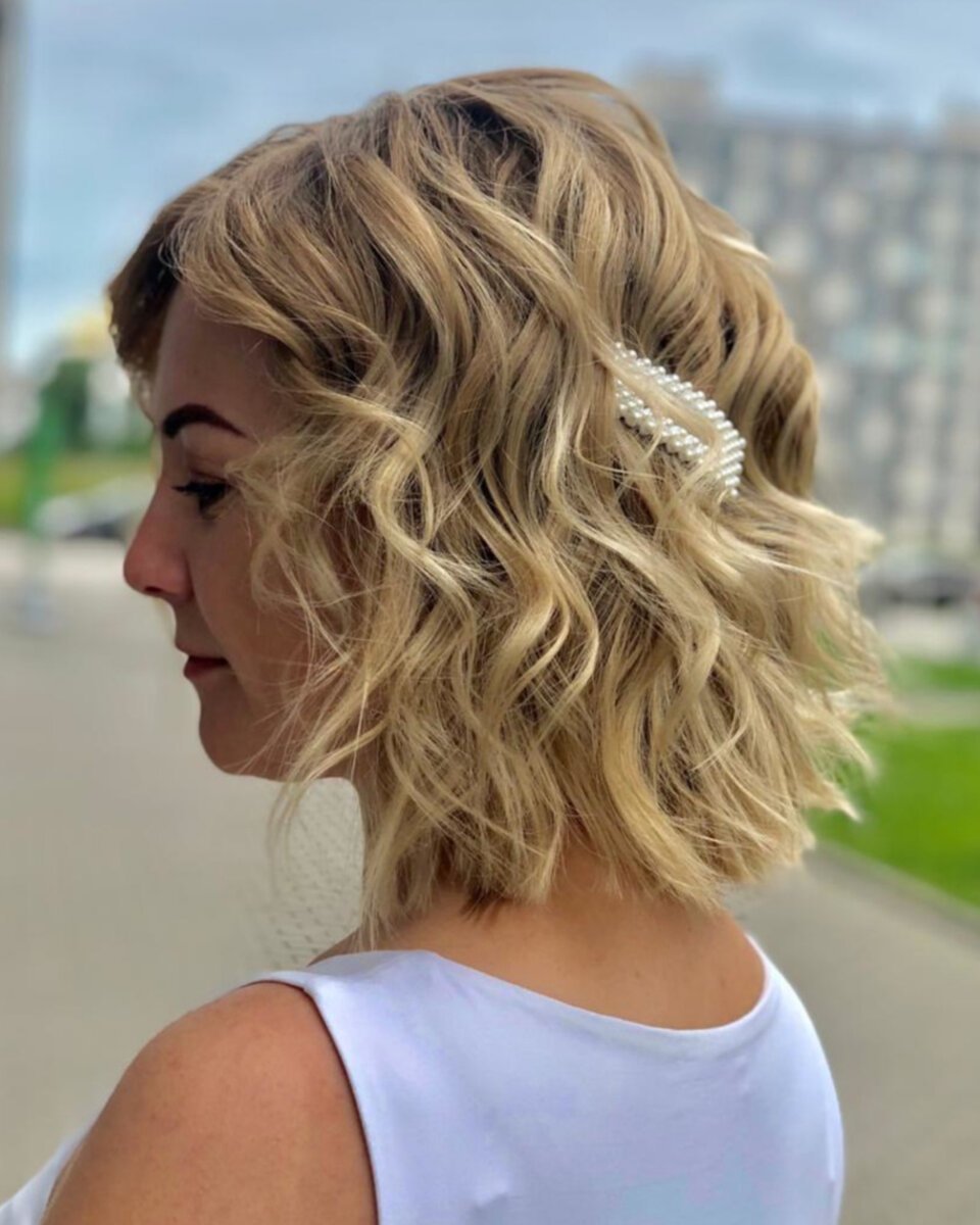 Стрижка Боб градуированный на короткие волнистые волосы с челкой