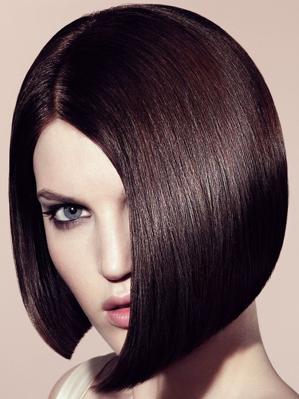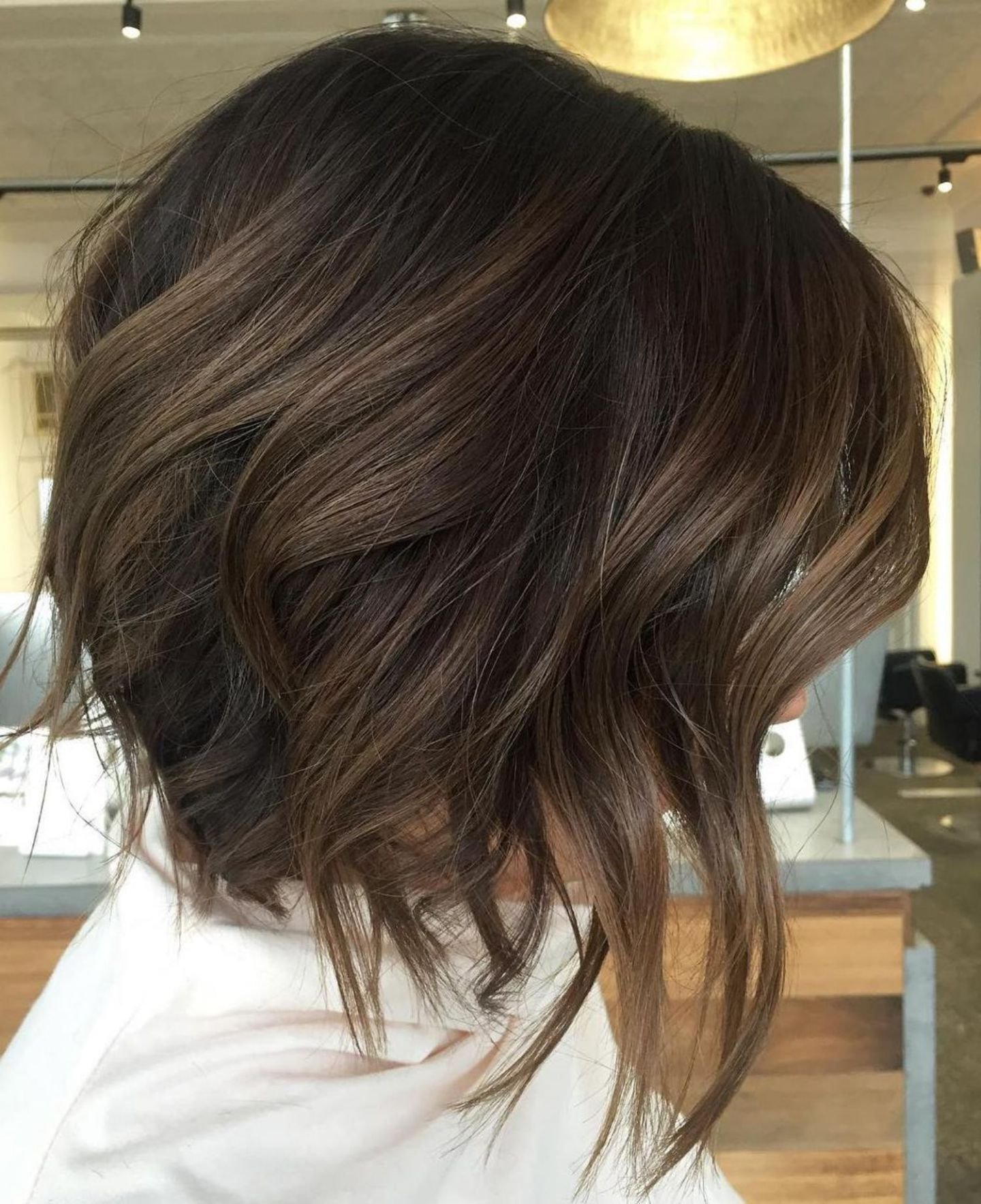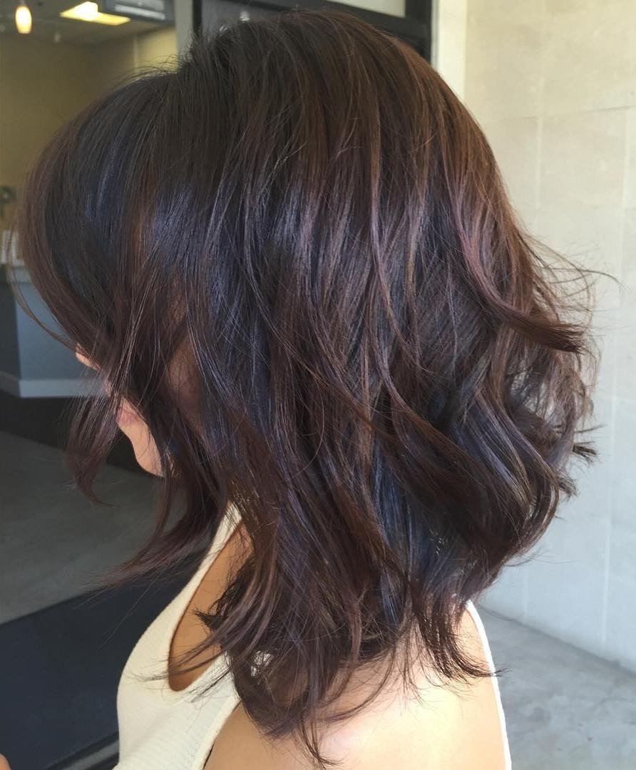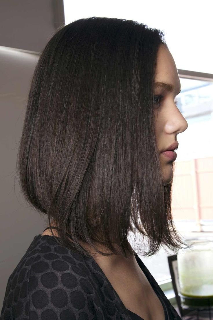 Удлинённый Боб градуированный на средние темные волосы