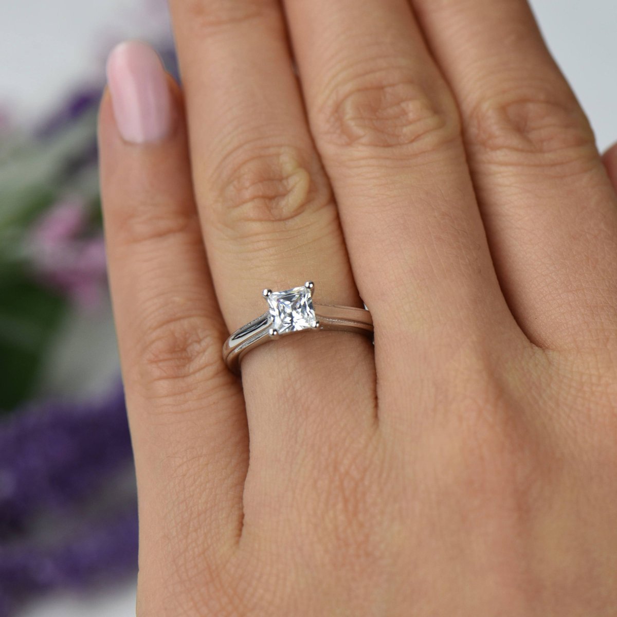 Помолвочное кольцо с бриллиантом принцесса 1 карат
