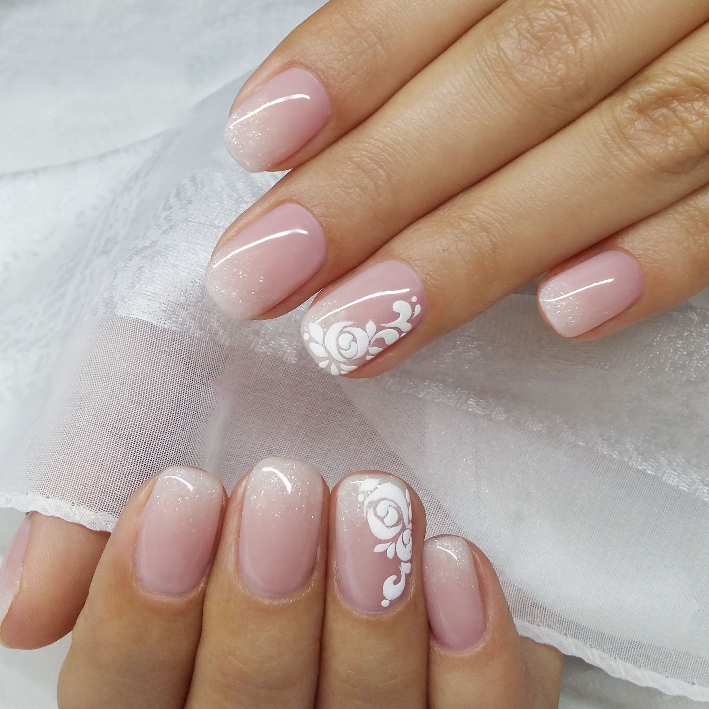 Нежный свадебный маникюр на короткие ногти