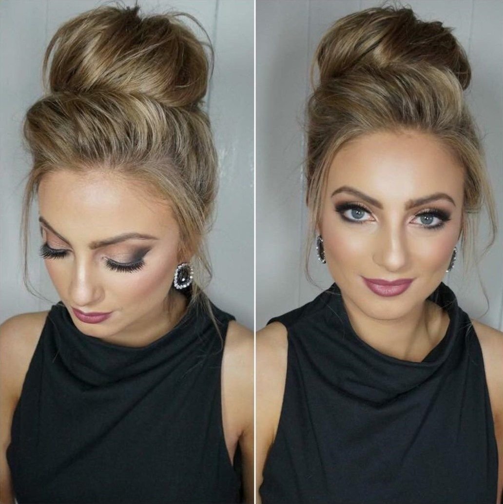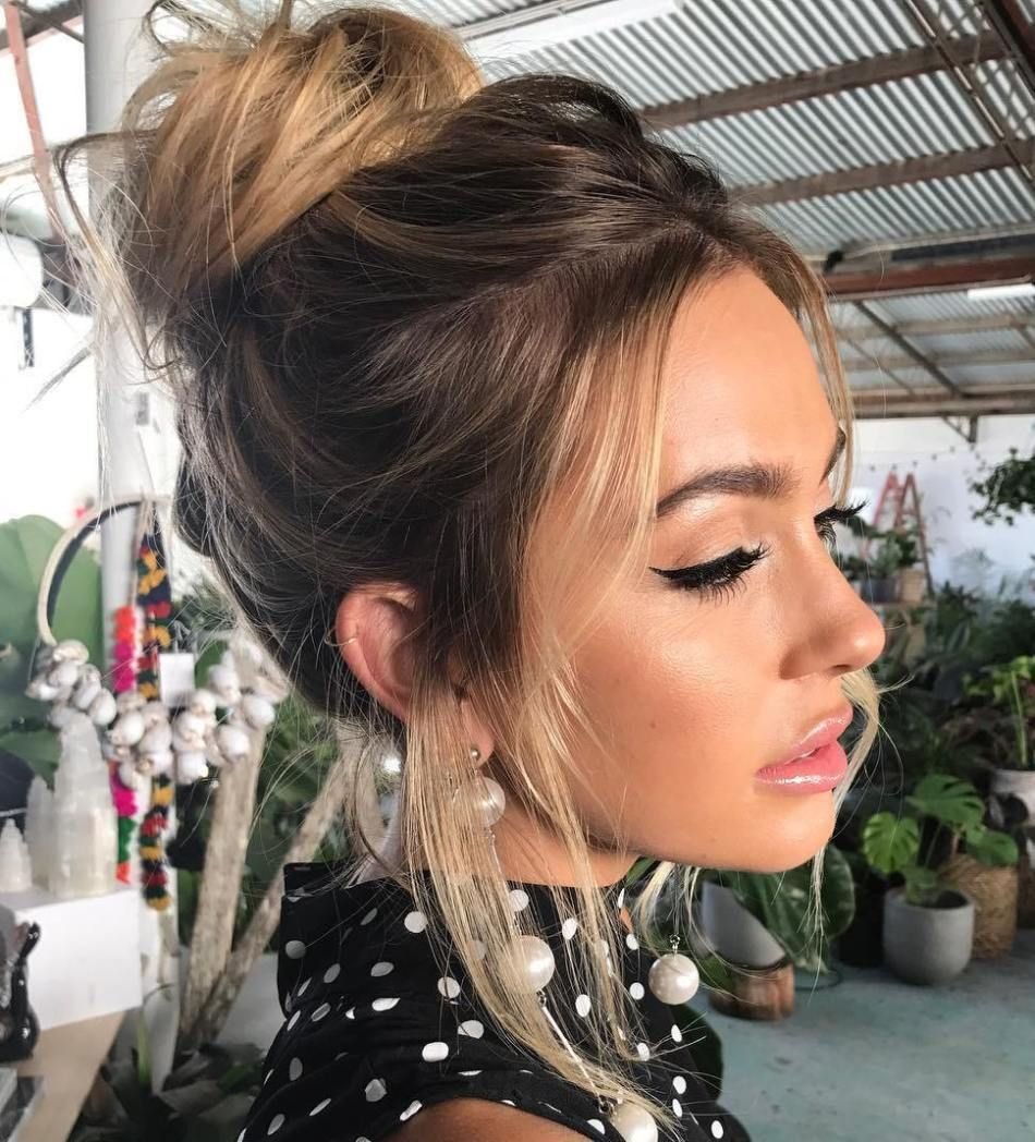 Прическа высокий пучок с челкой