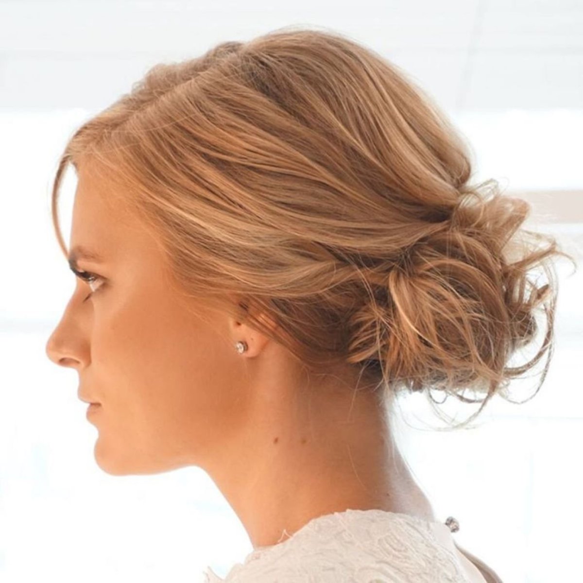 Низкий пучок на средние волосы