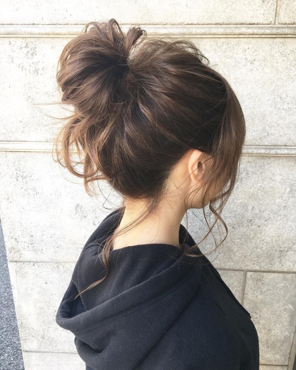 Пучок на голове небрежный