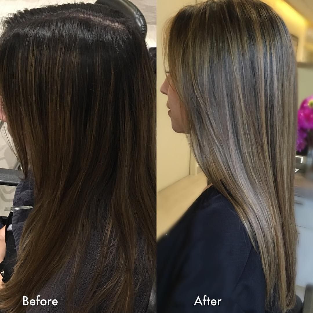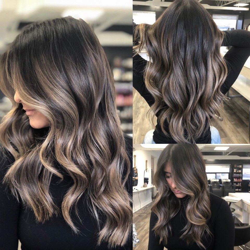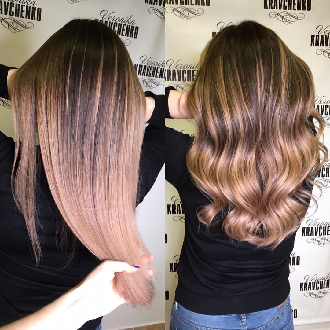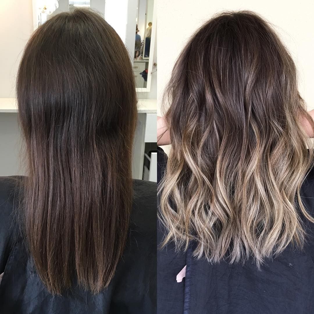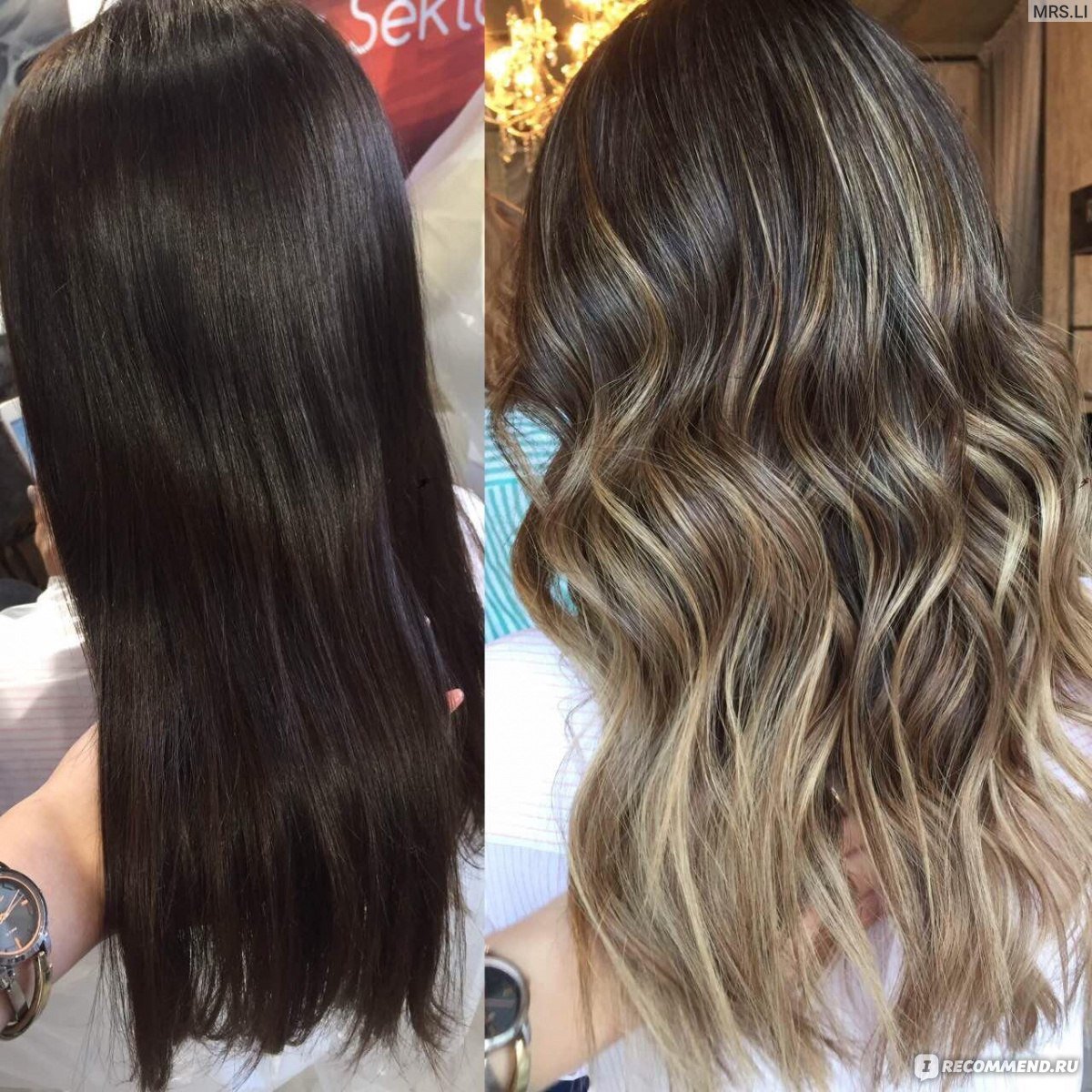Балаяж на темные волосы до после