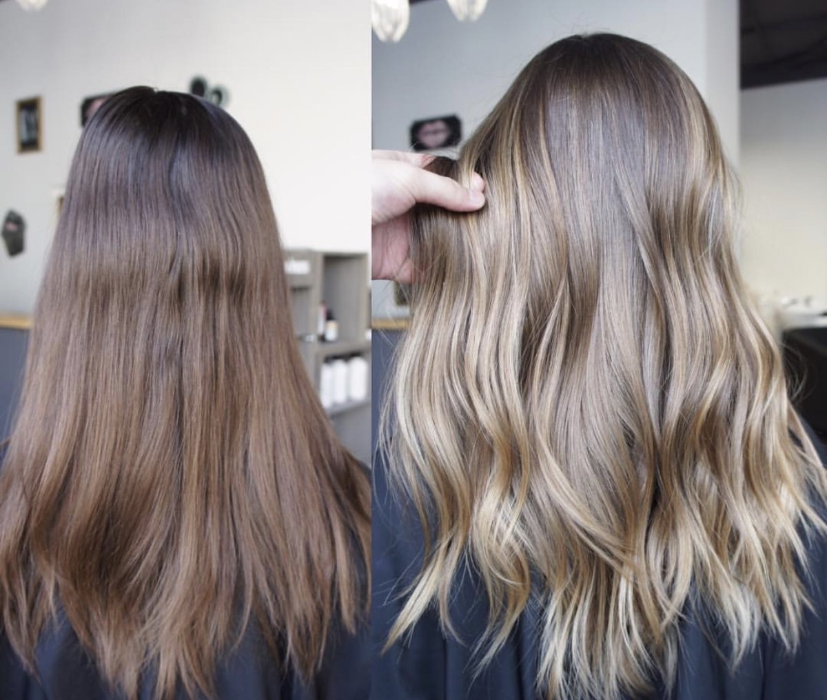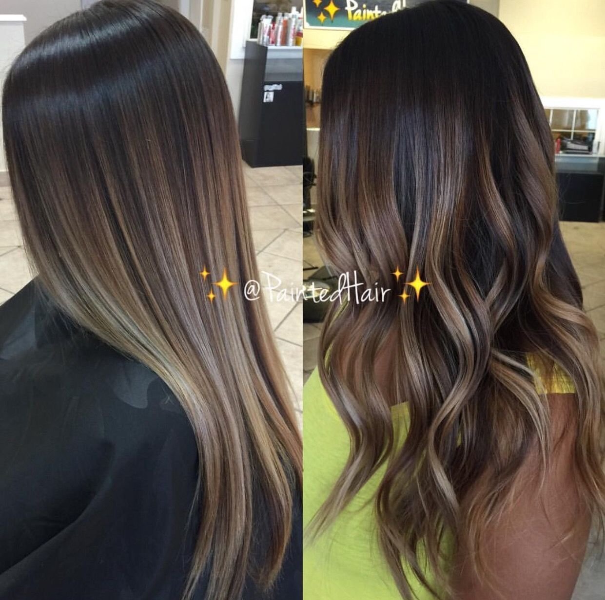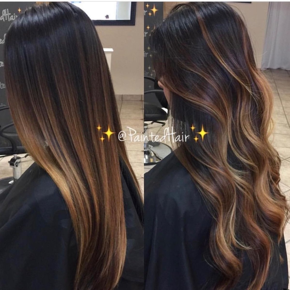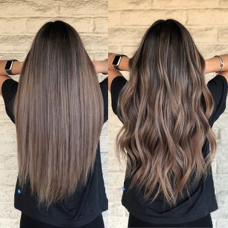 Балаяж на темные волосы до после