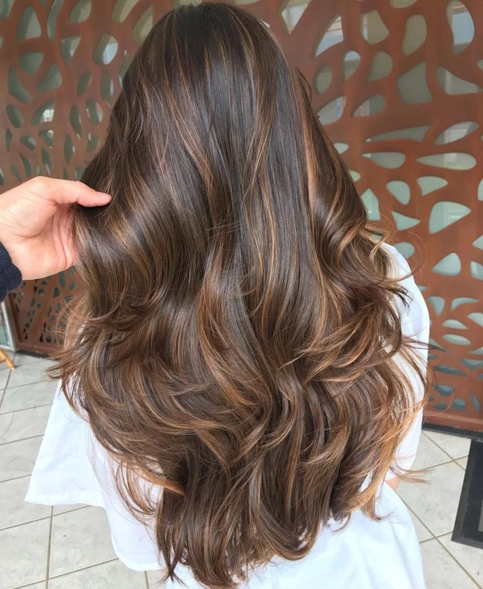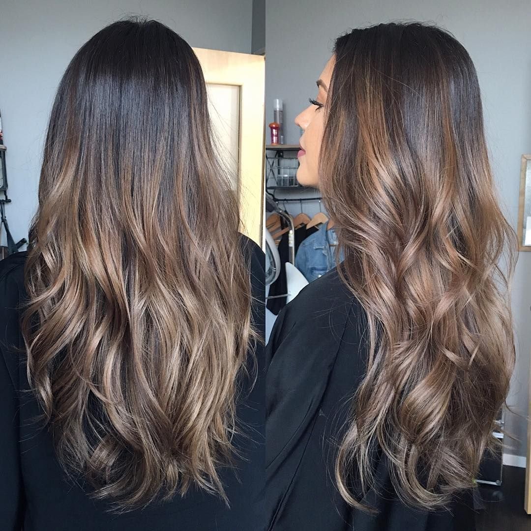 Шатуш на темные волосы длинные со всех сторон