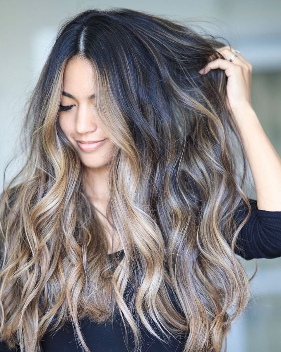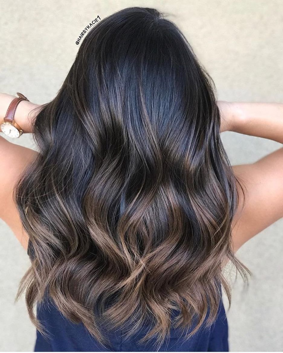 Коричневый балаяж на черные волосы