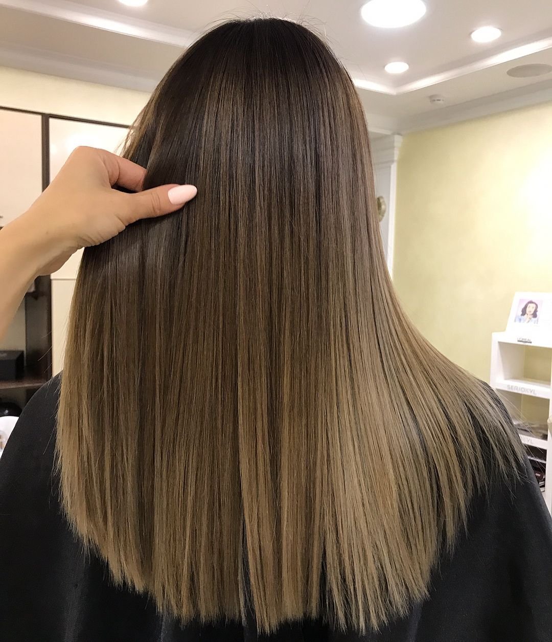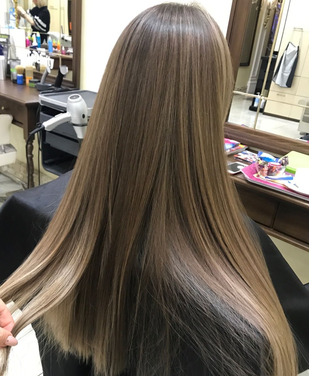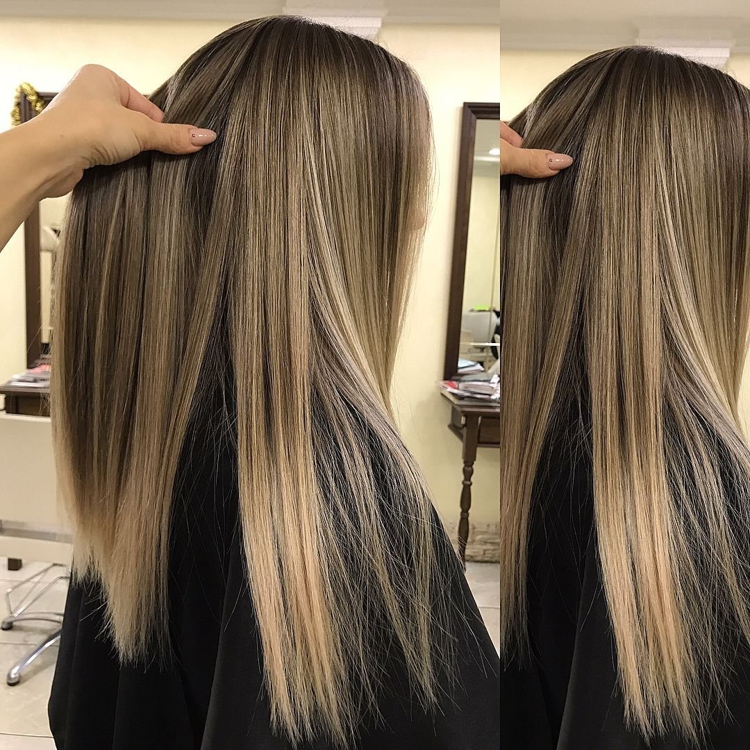 Балаяж на темные прямые волосы