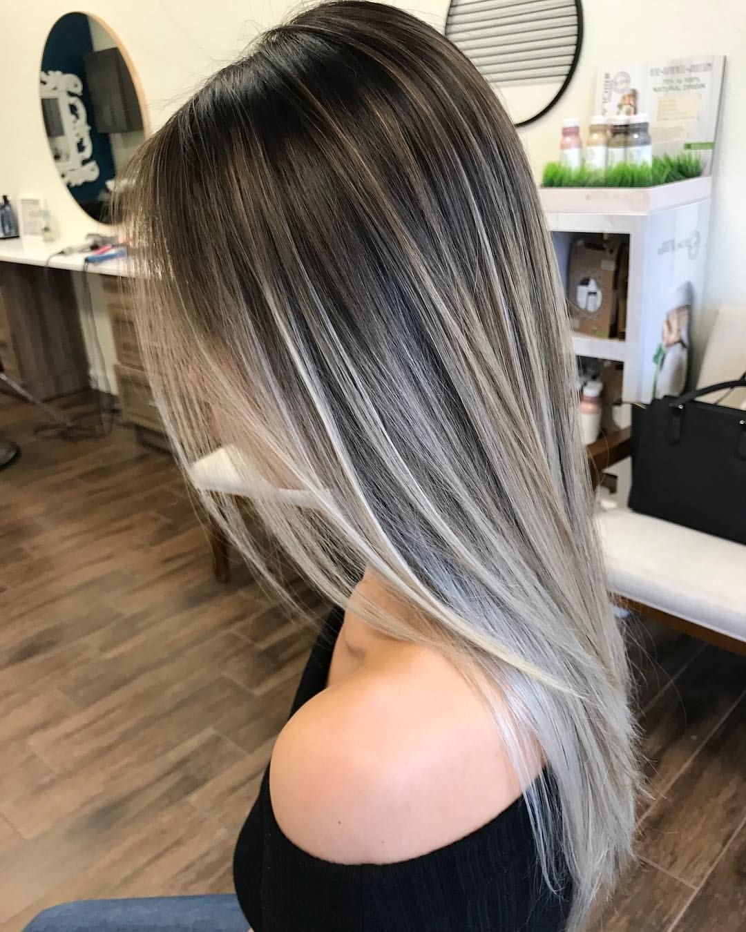 Окрашивание седых волос балаяж