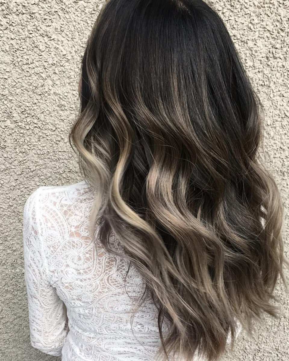 Балаяж окрашивание на темные волосы средней прямые