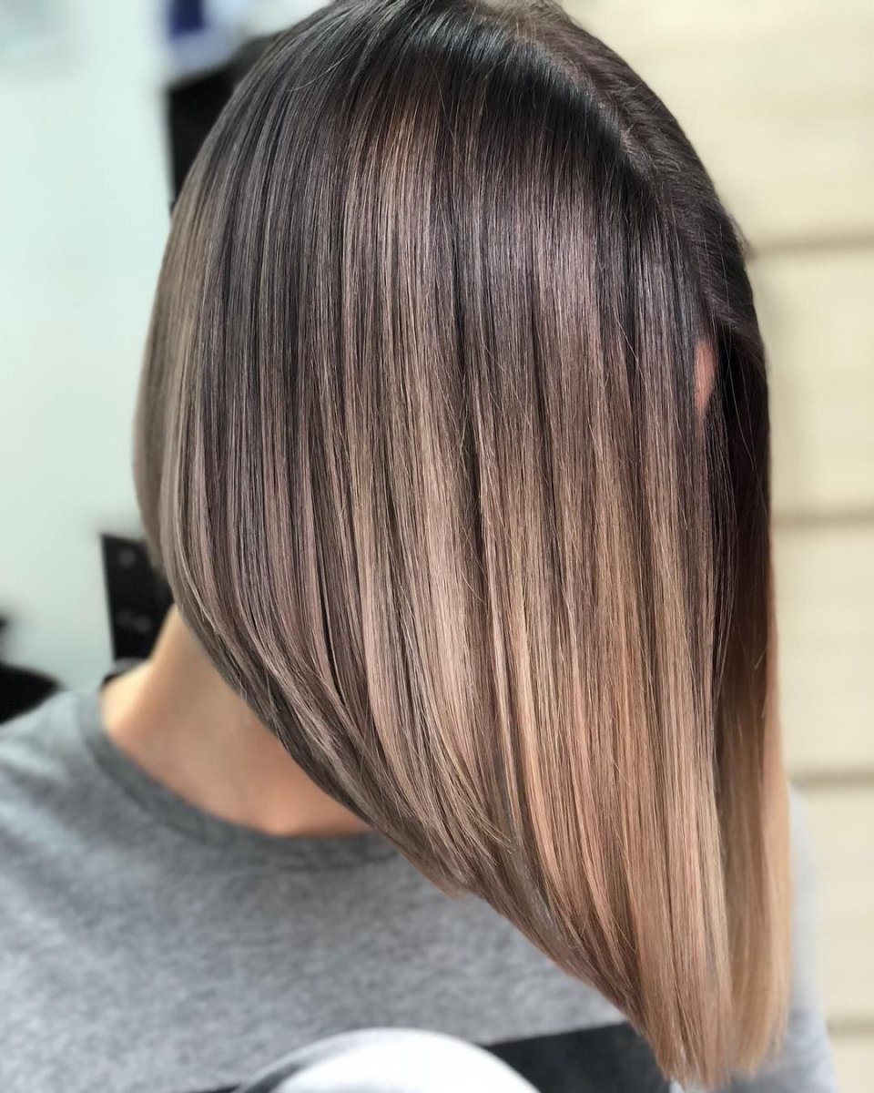 Балаяж на темные прямые волосы каре