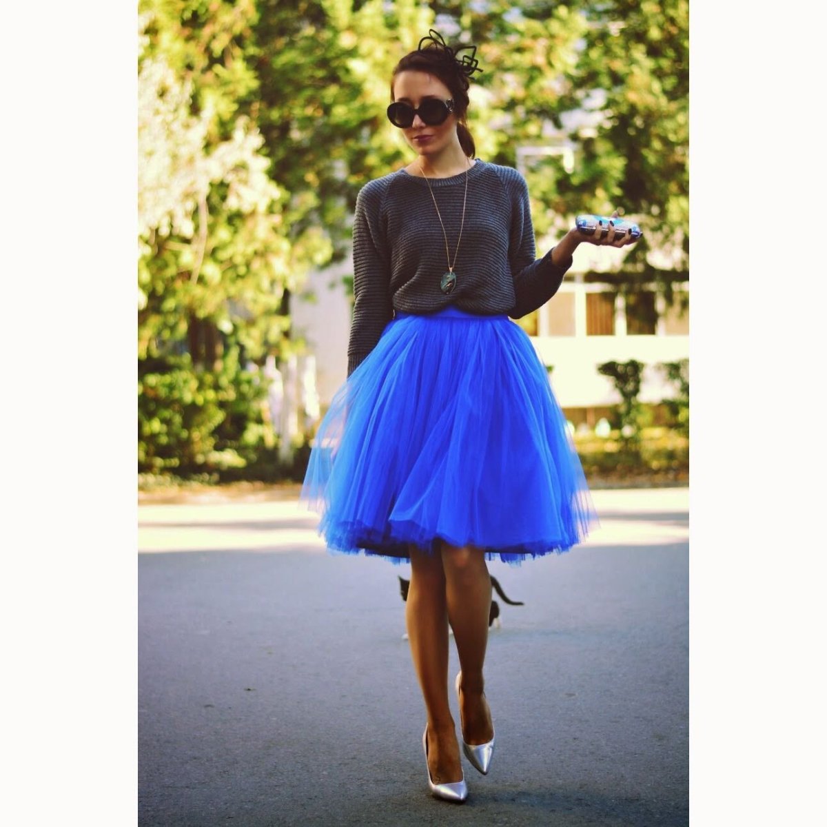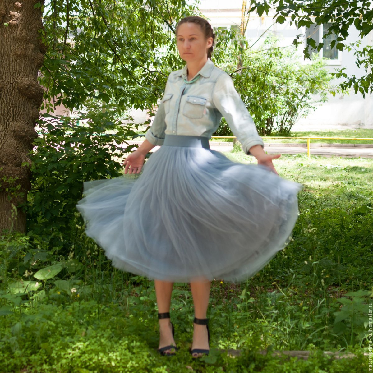 Пышная голубая юбка