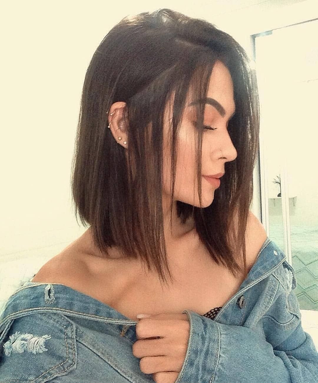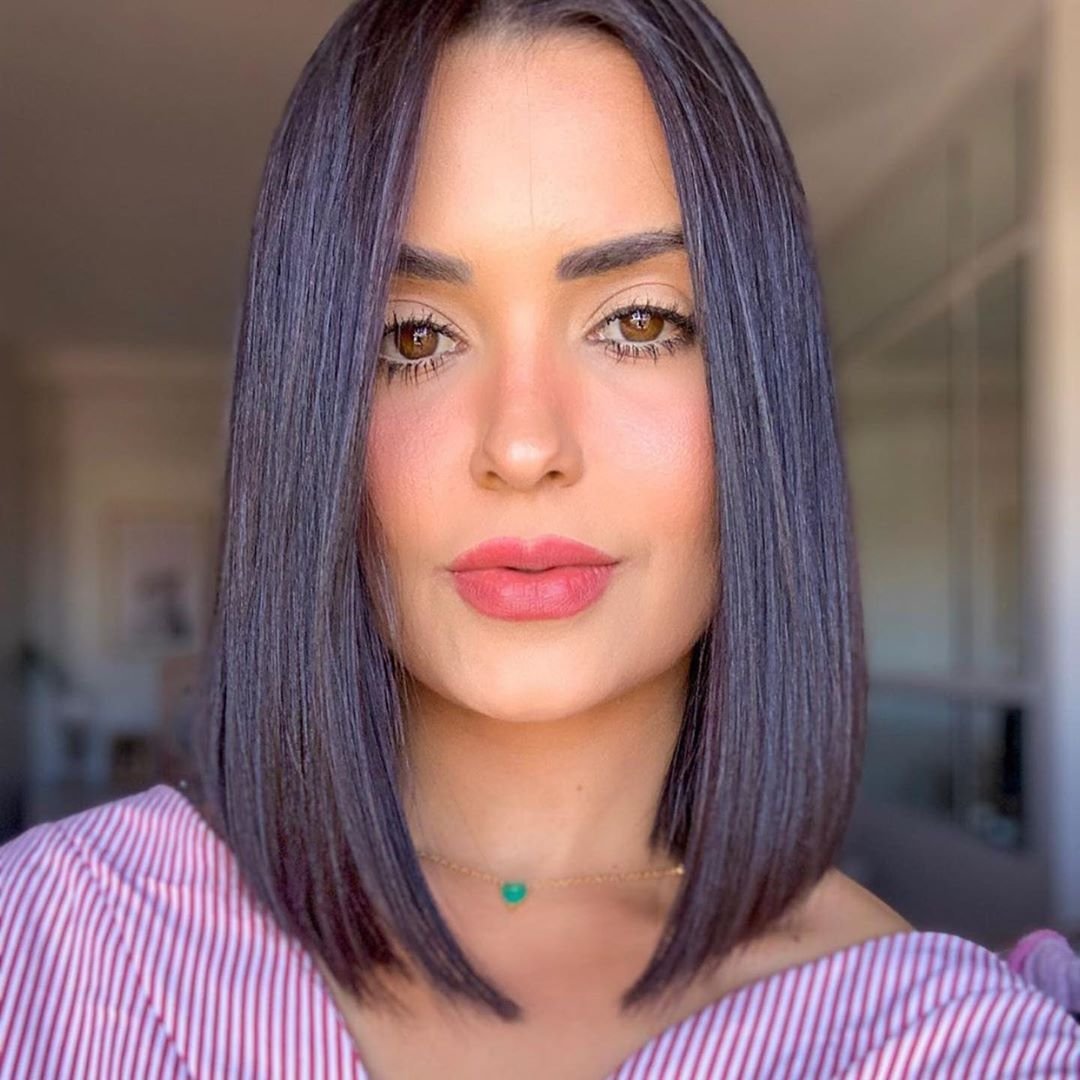 Стрижка на средние темные волосы с ровным срезом