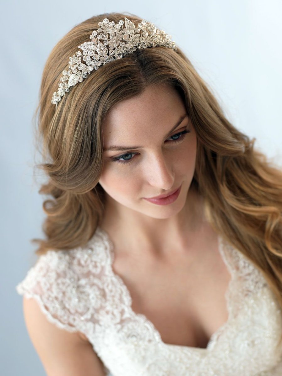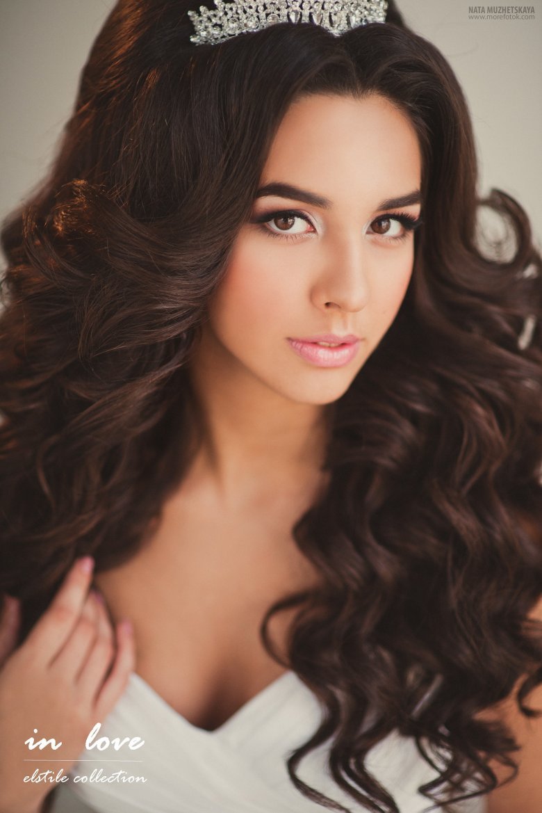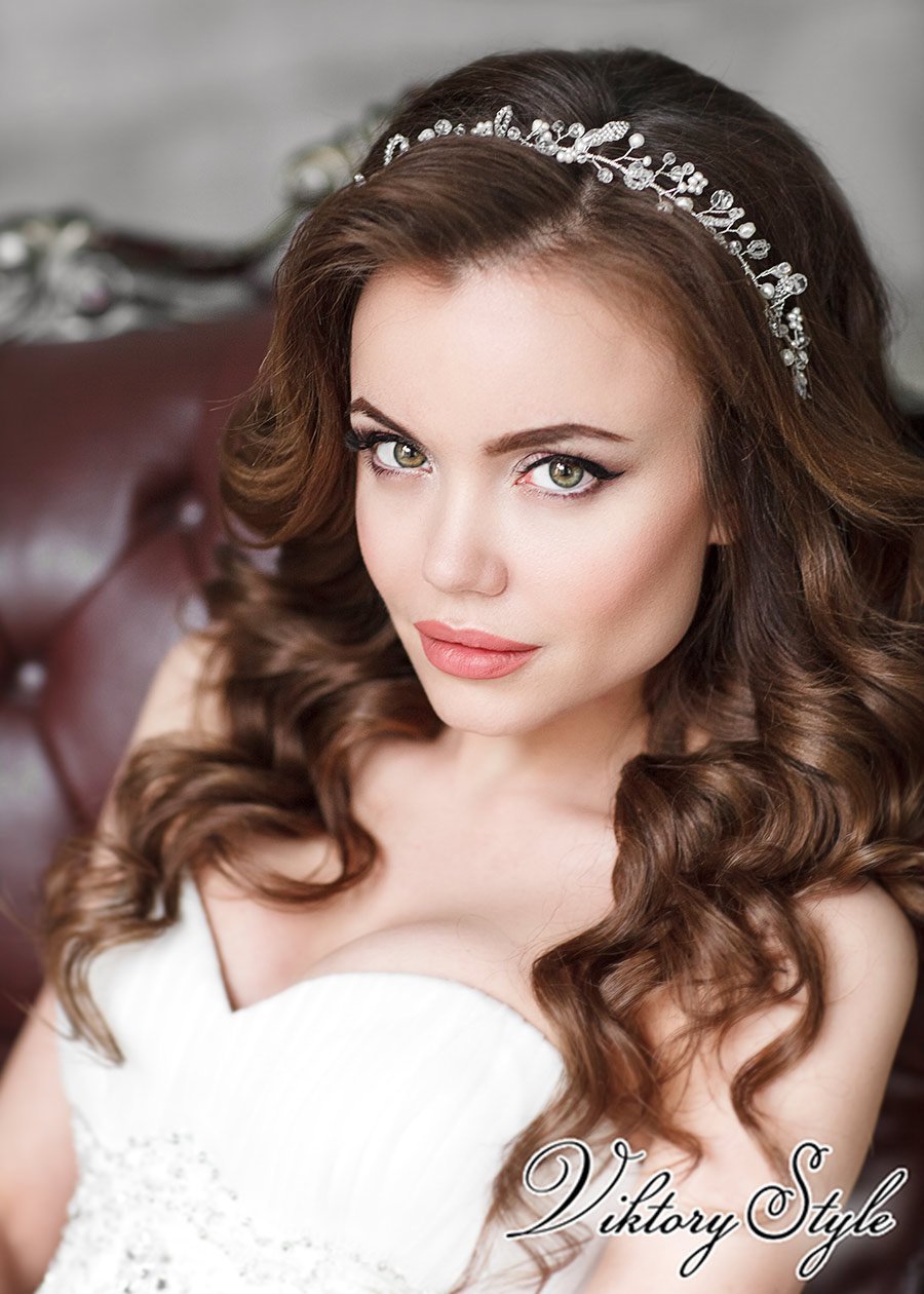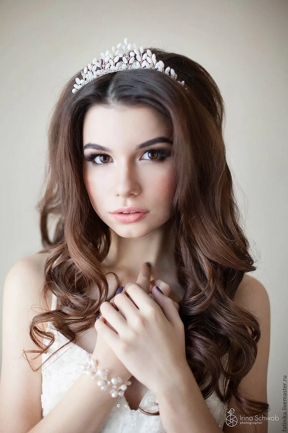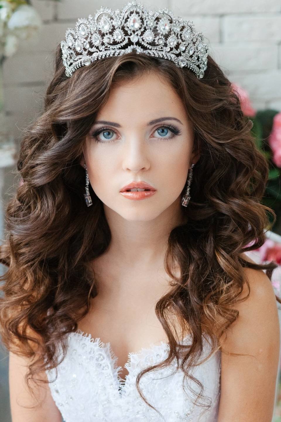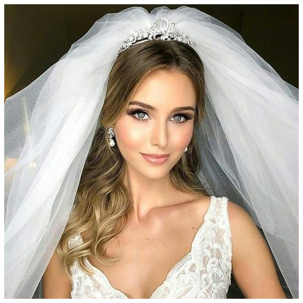Свадебные причёски с фатой и диадемой распущенные волосы
