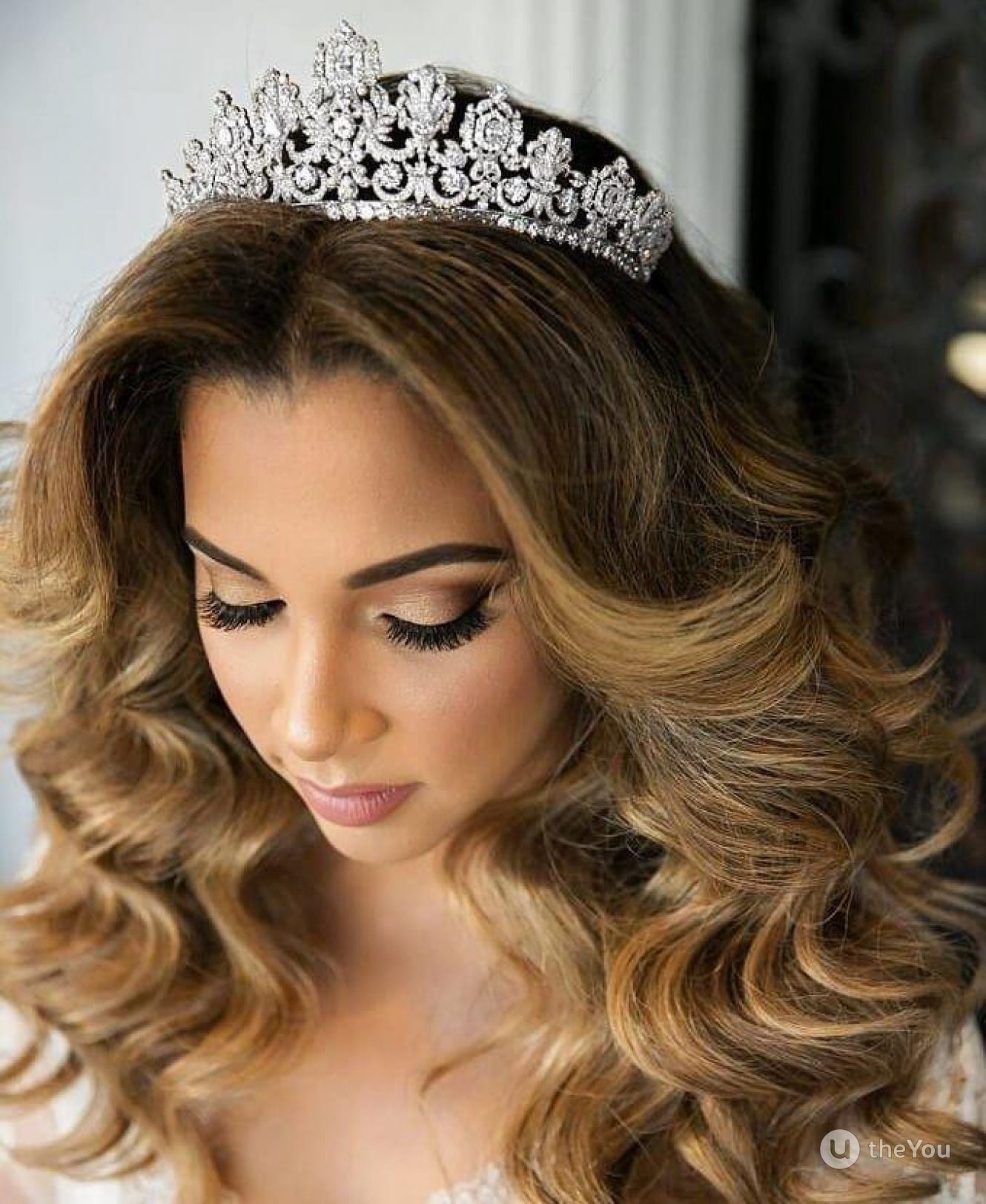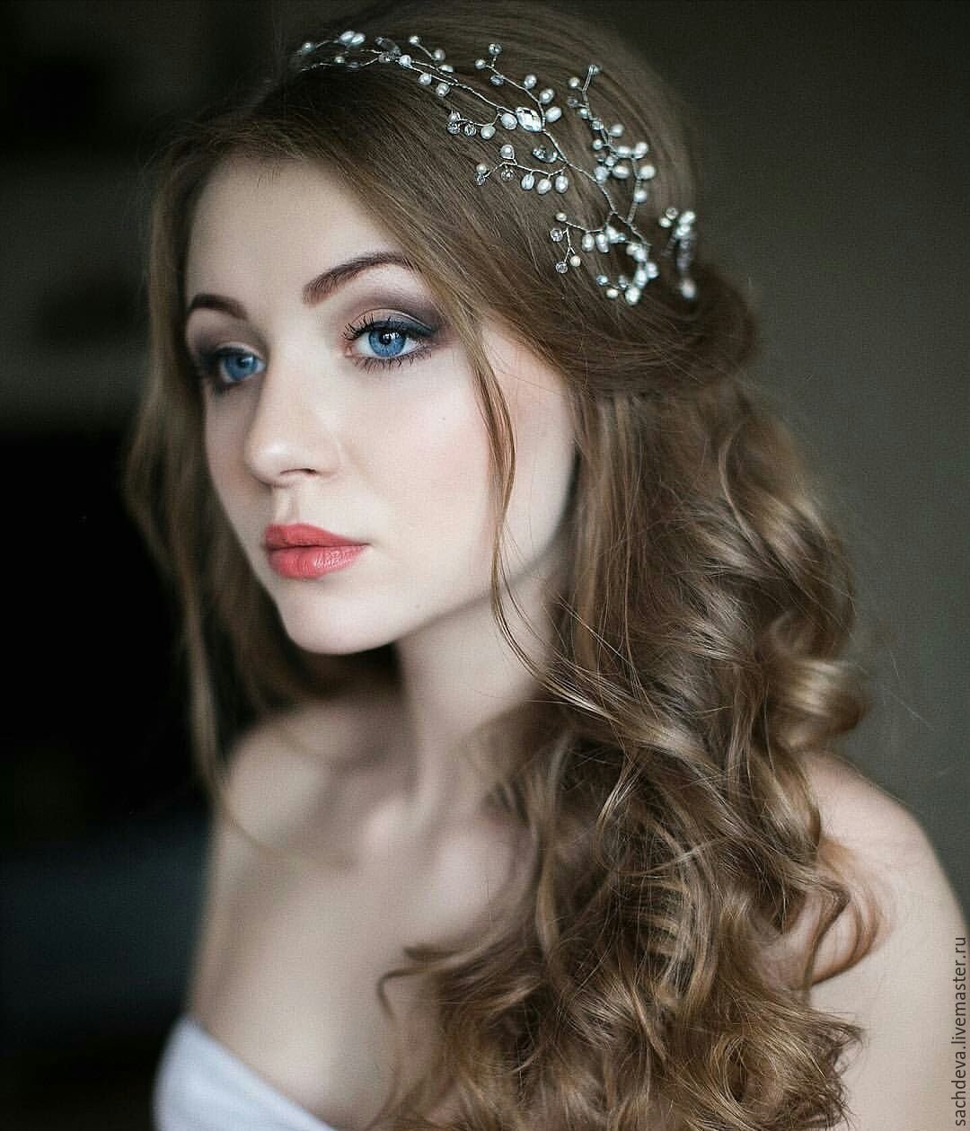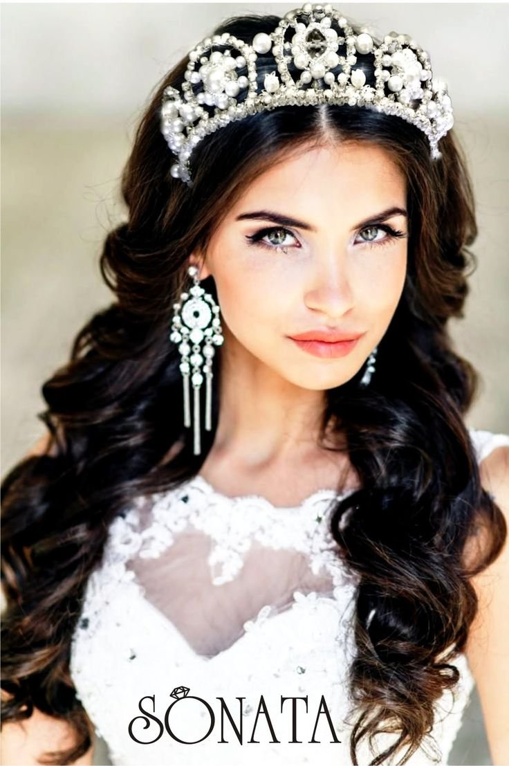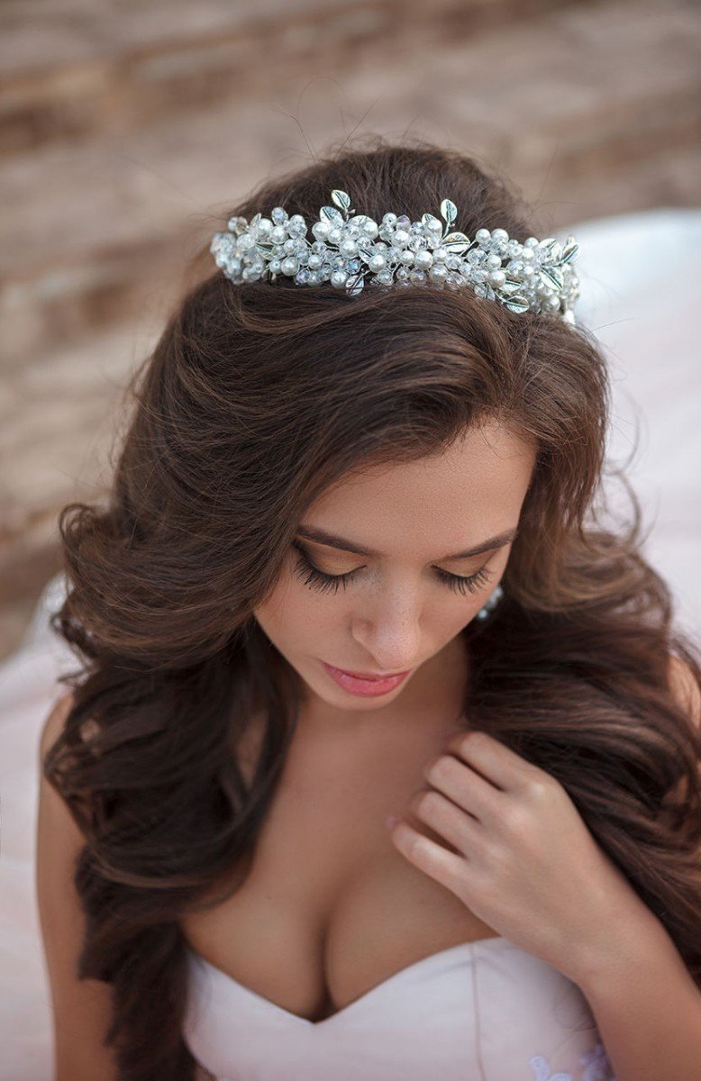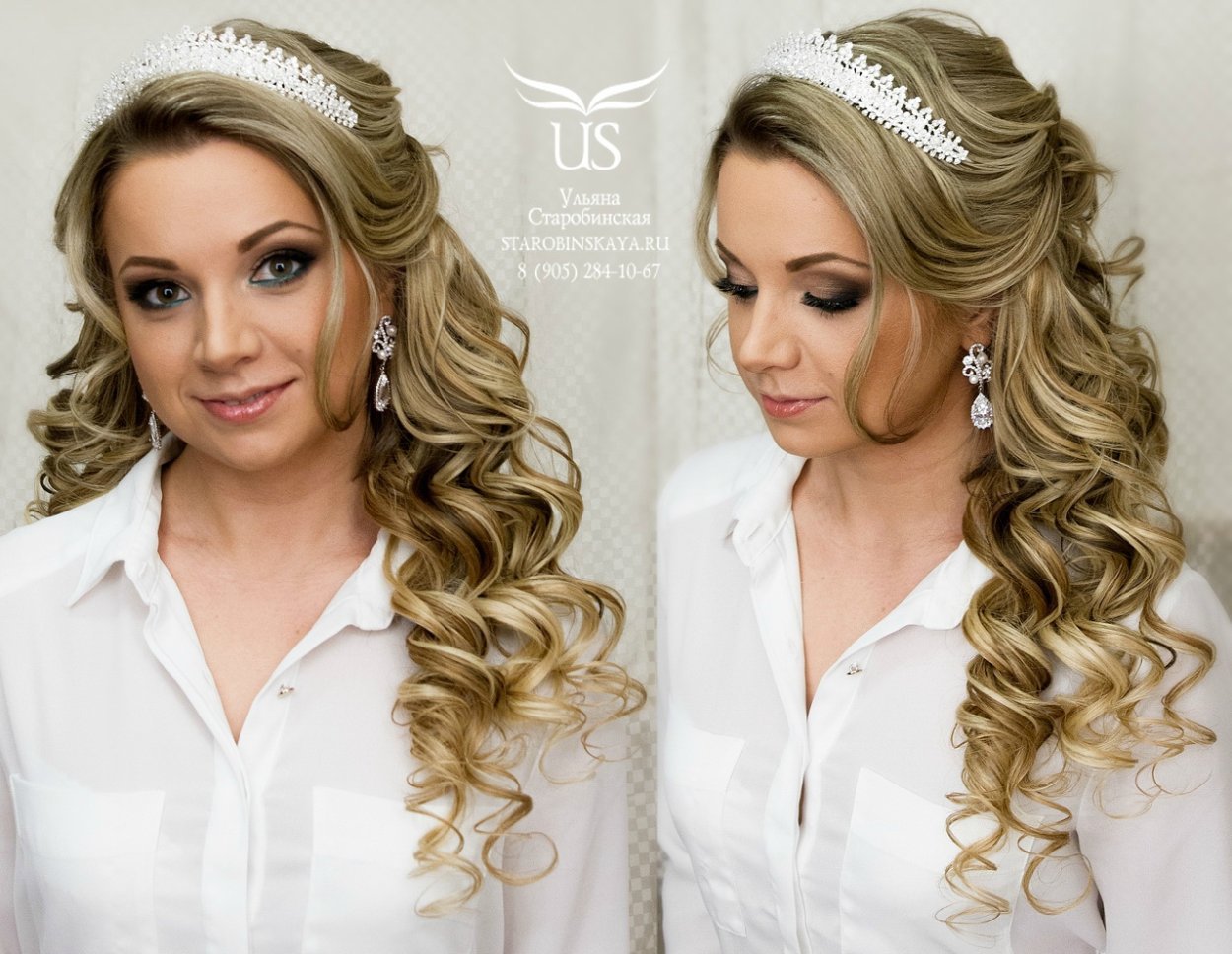 Свадебные причёски с фатой и диадемой распущенные волосы