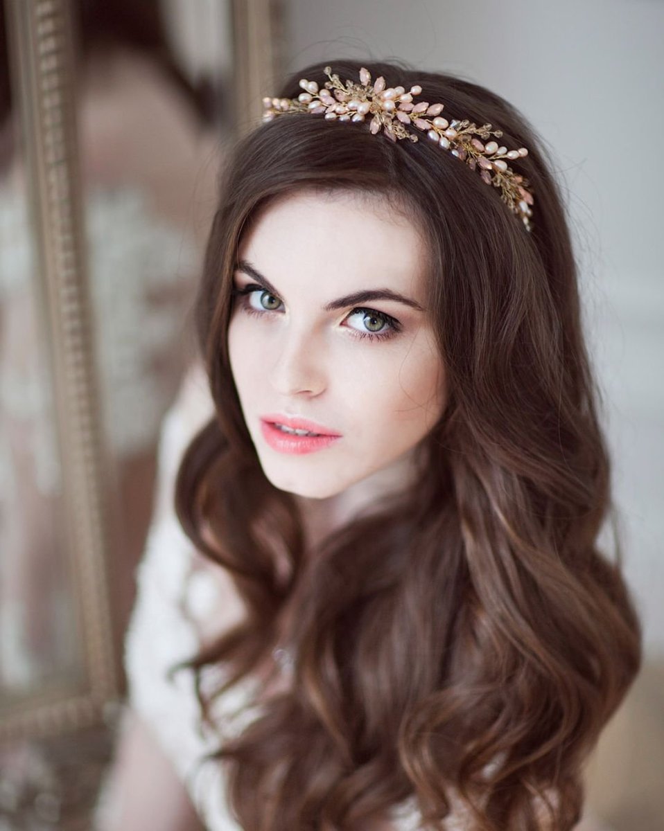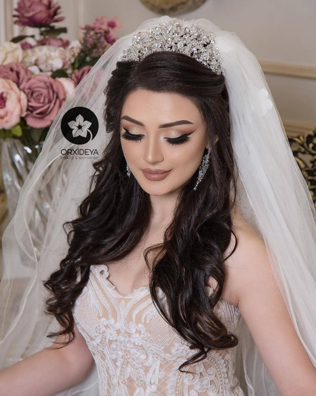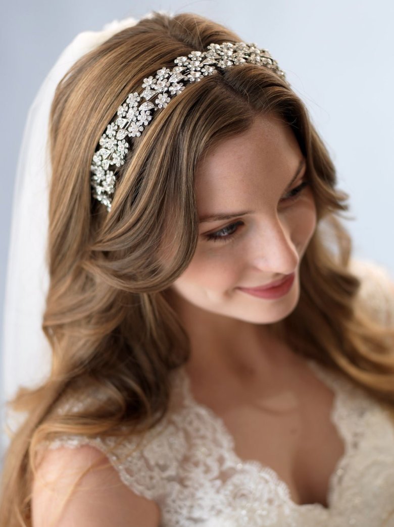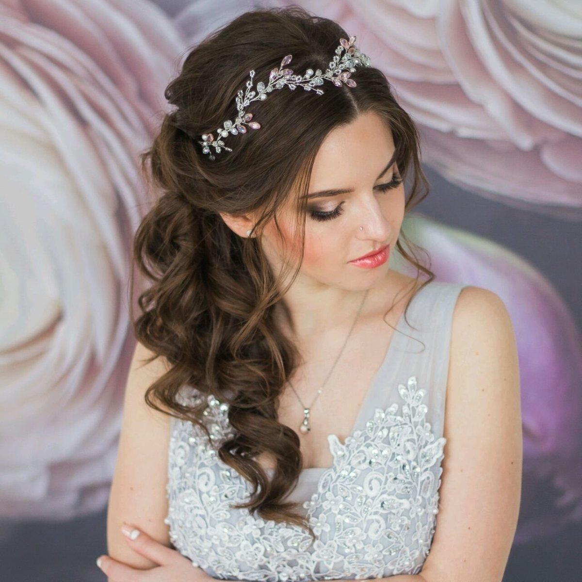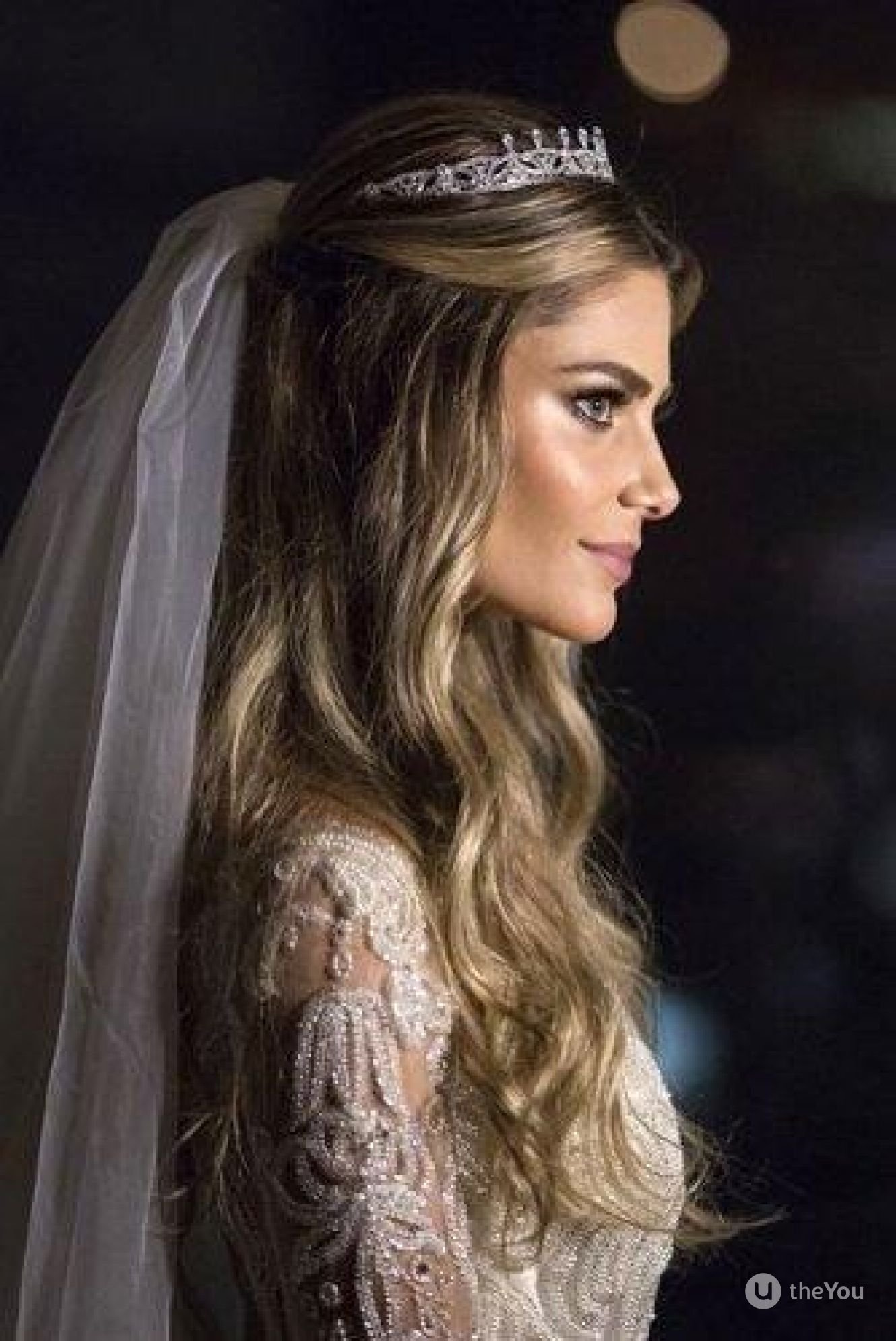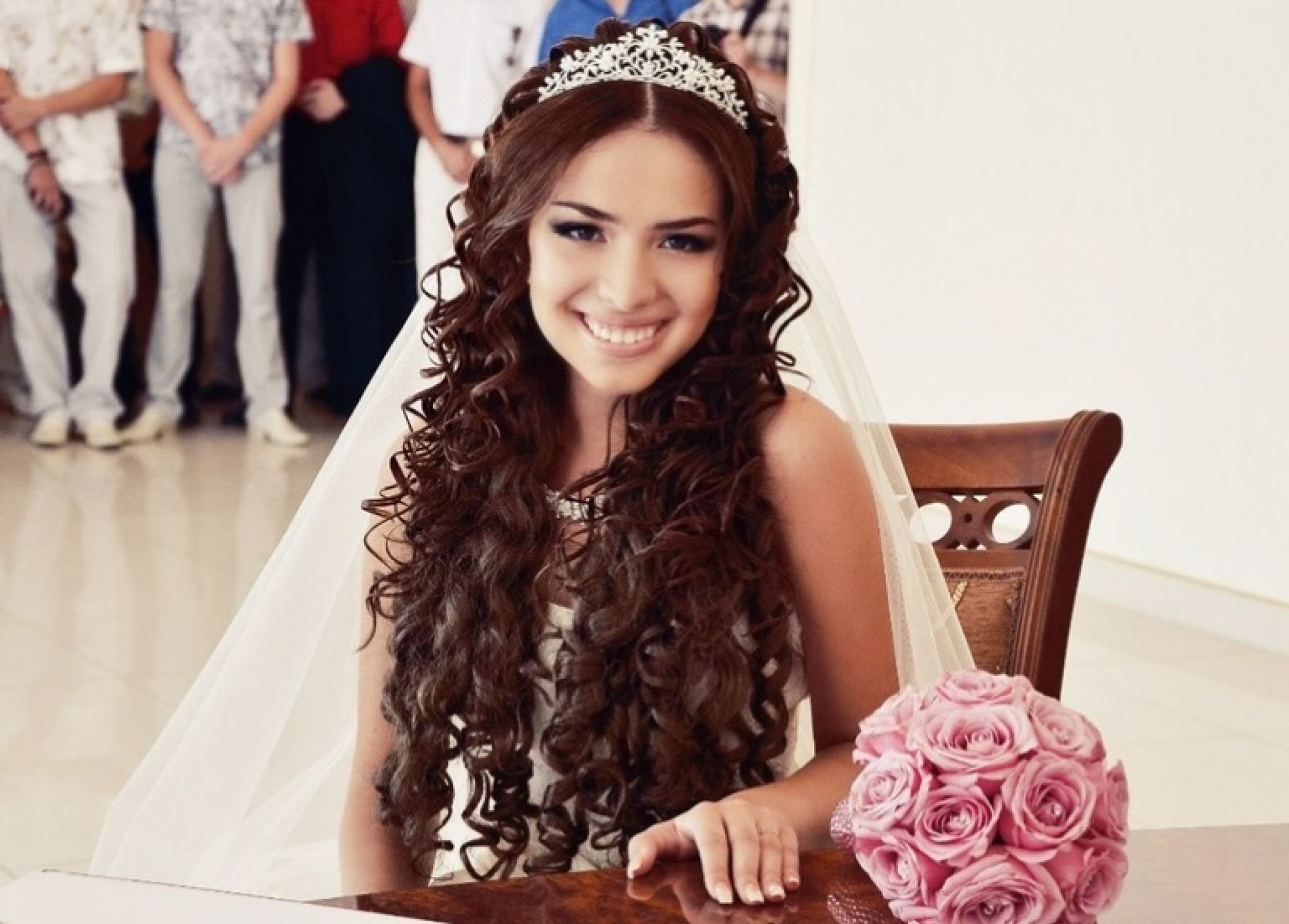 Свадебные причёски с фатой и диадемой распущенные волосы