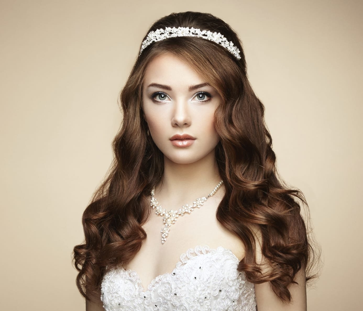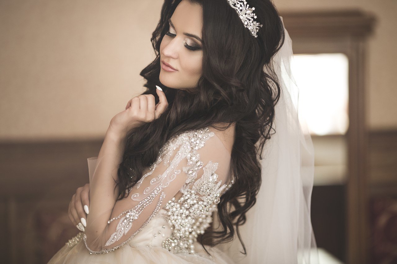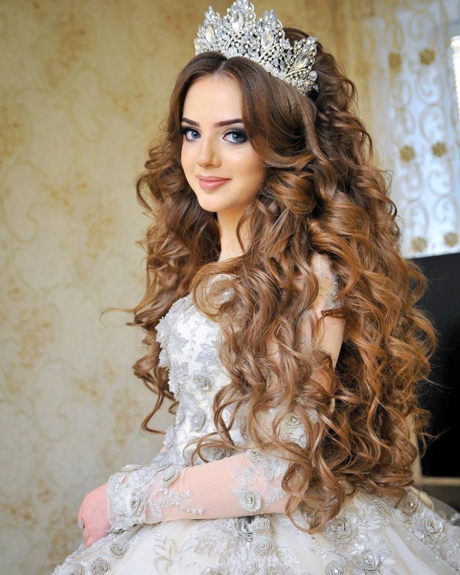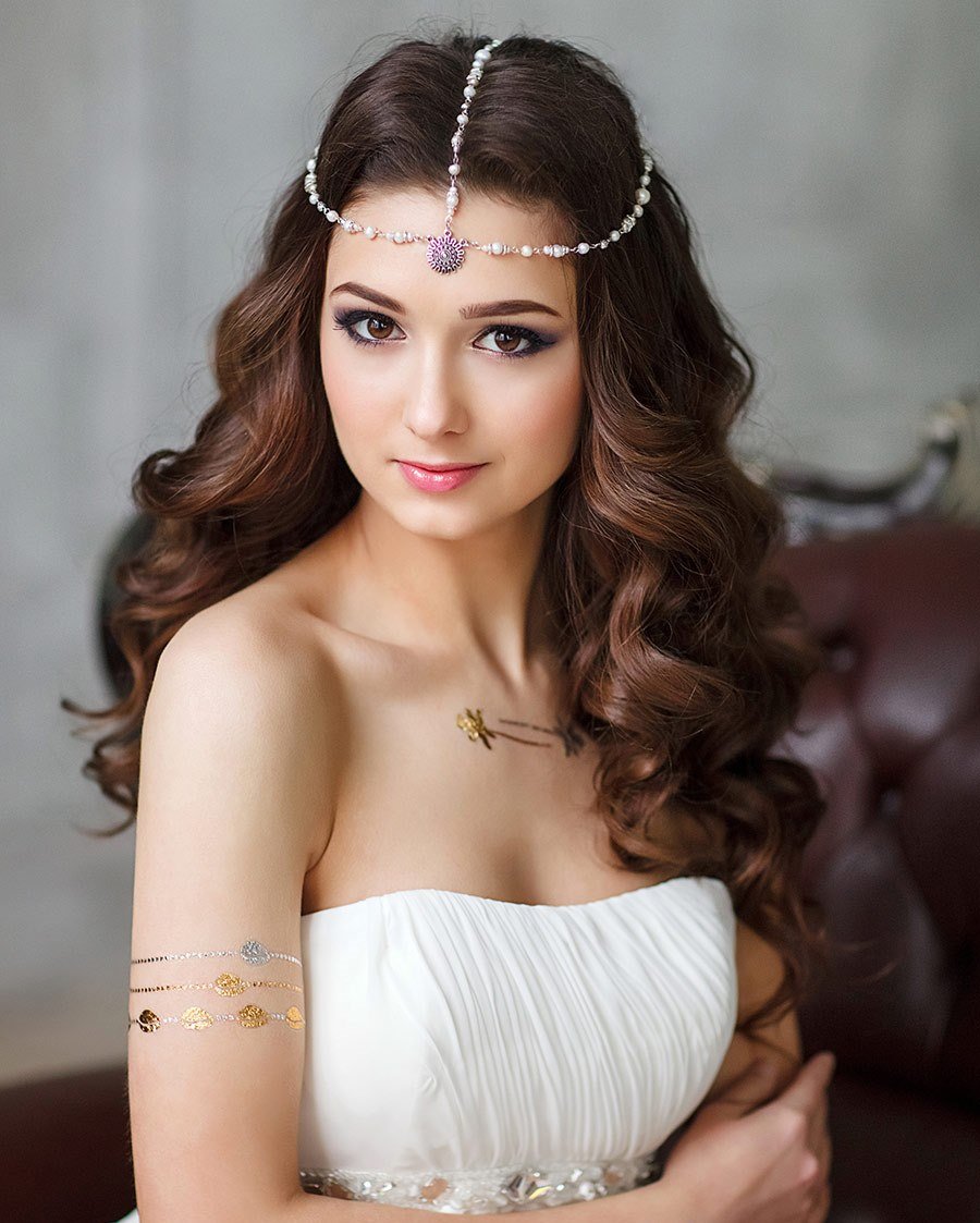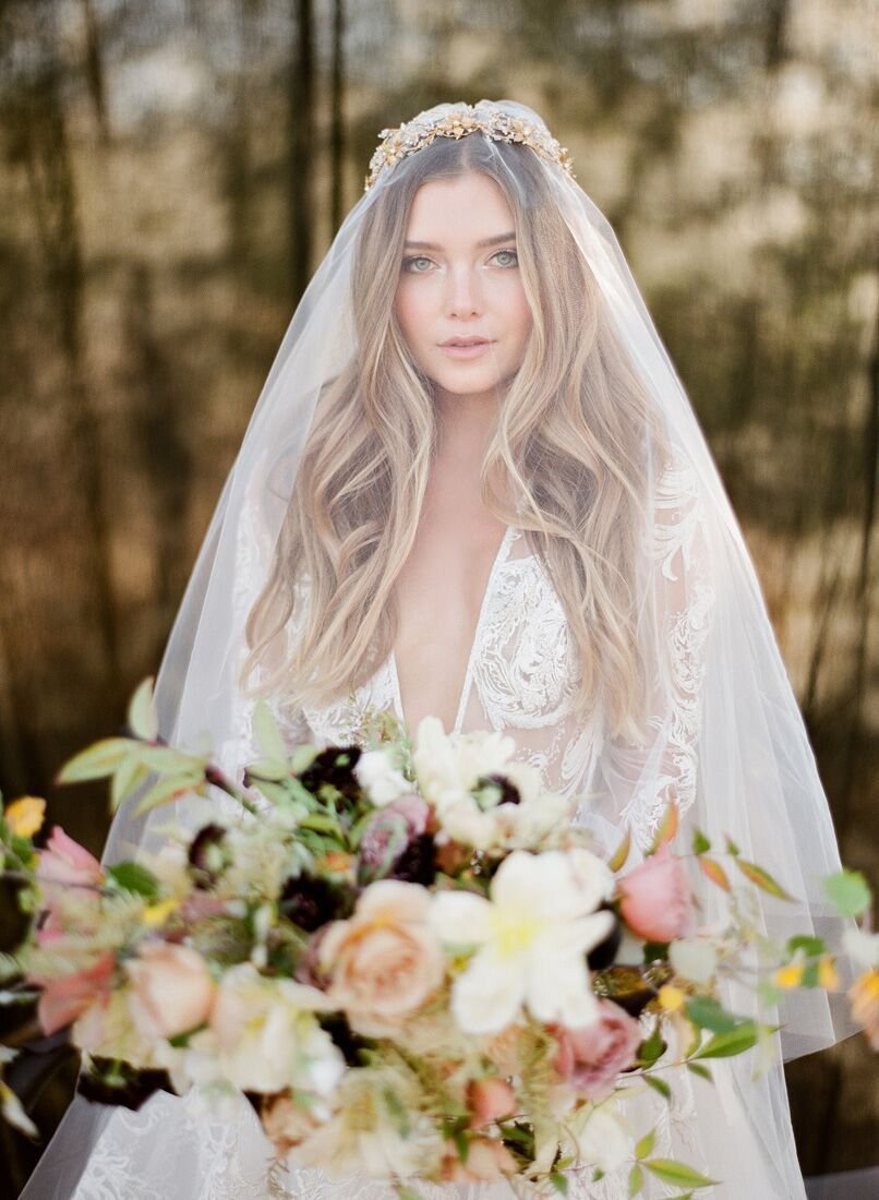 Свадебные причёски с фатой и диадемой распущенные волосы