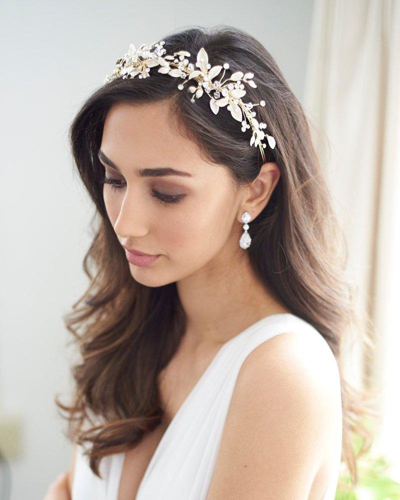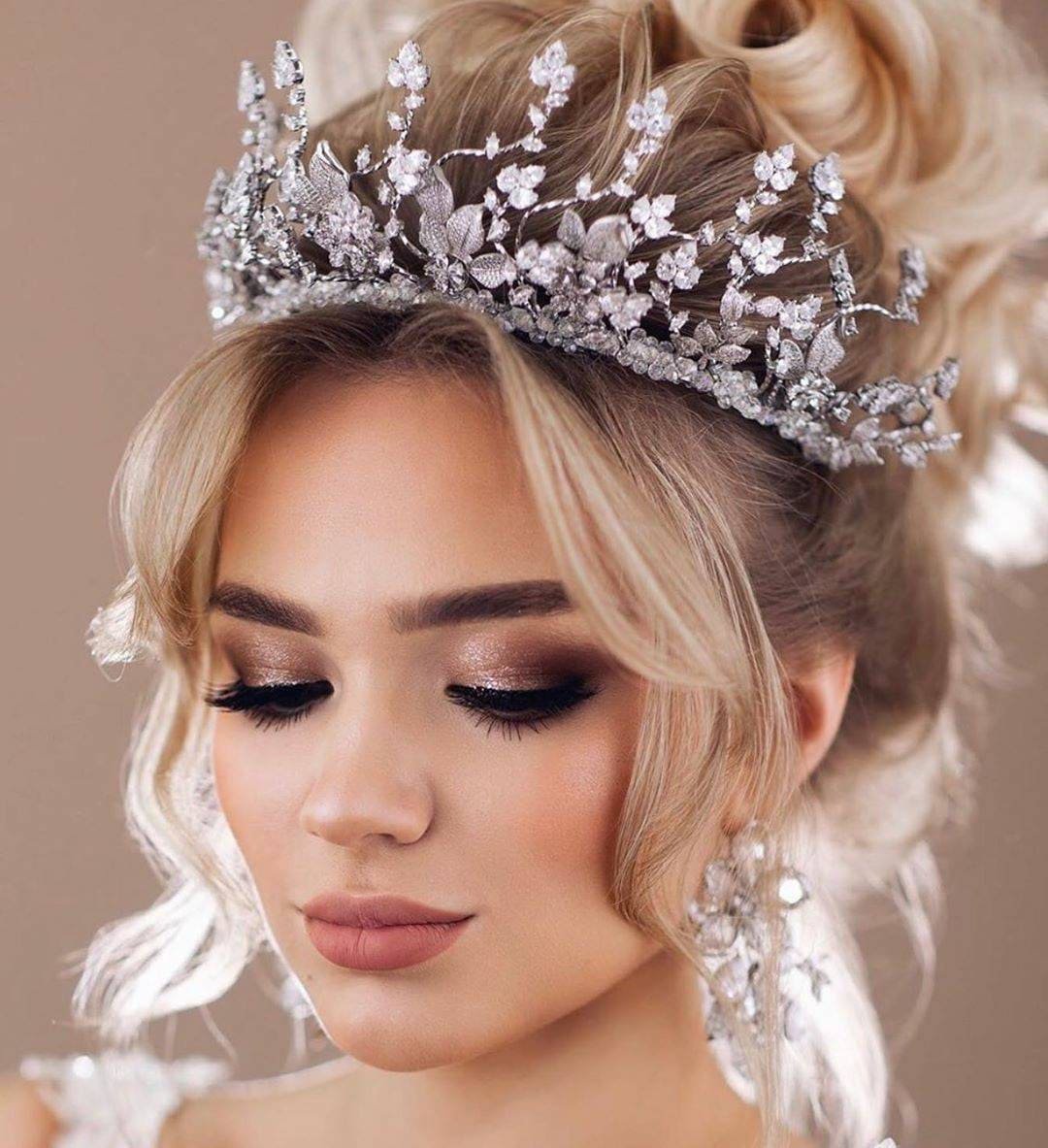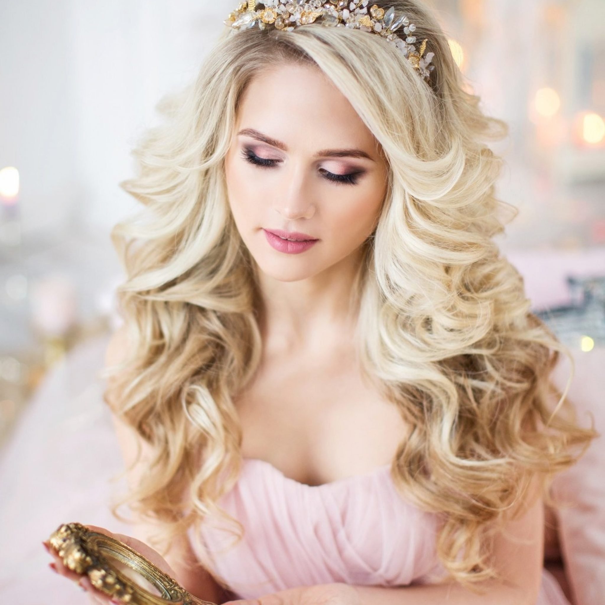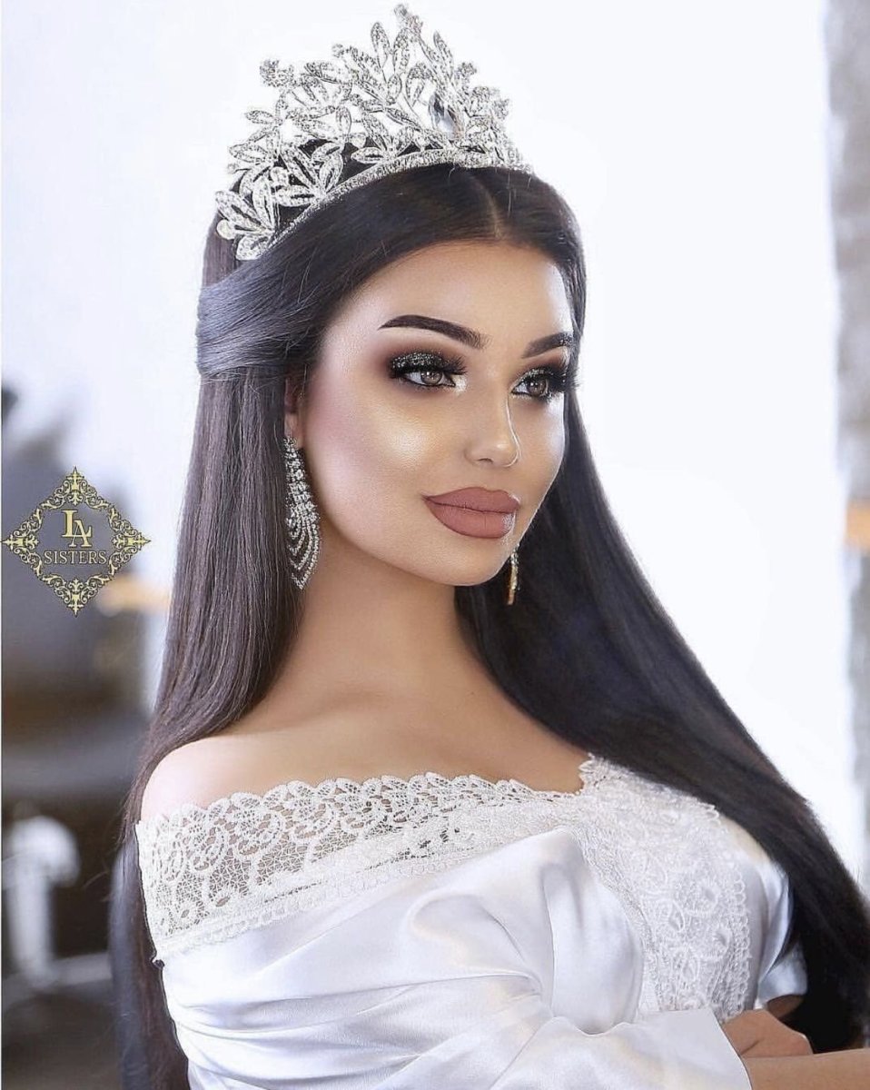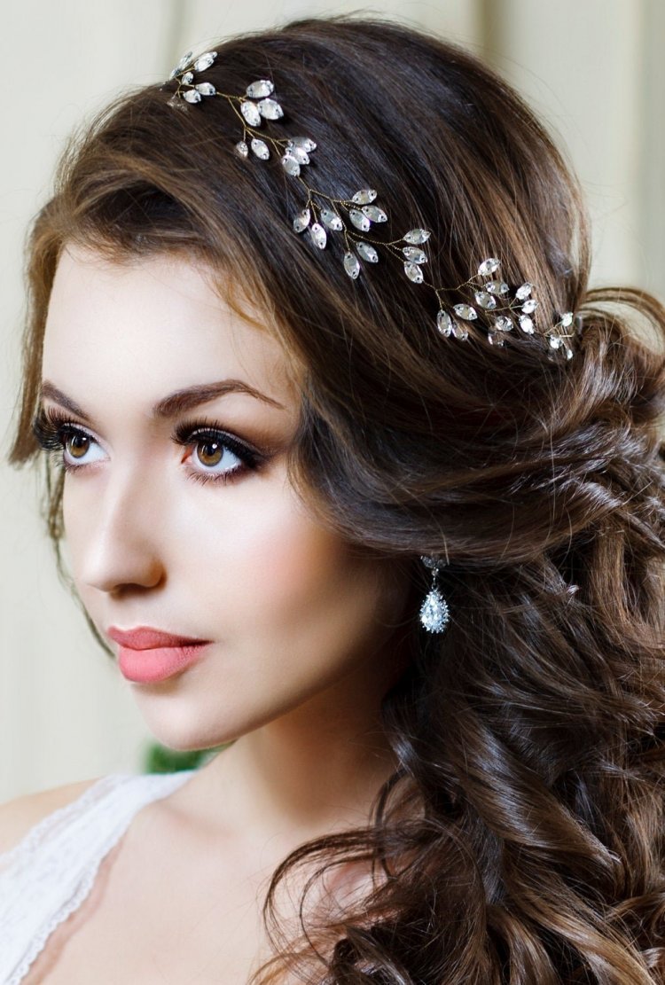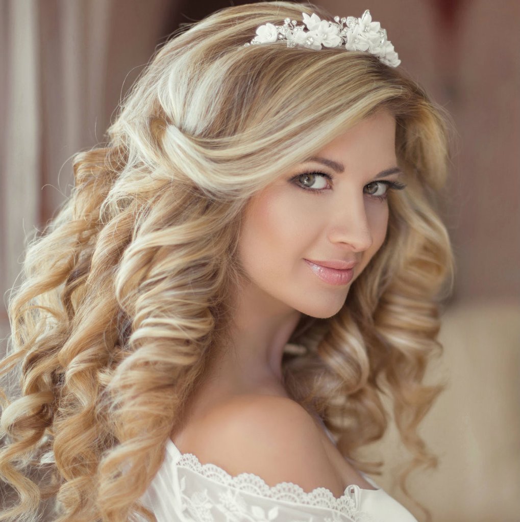 Свадебные причёски с фатой и диадемой распущенные волосы