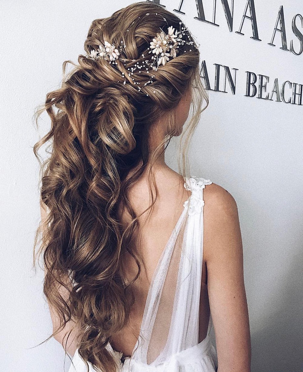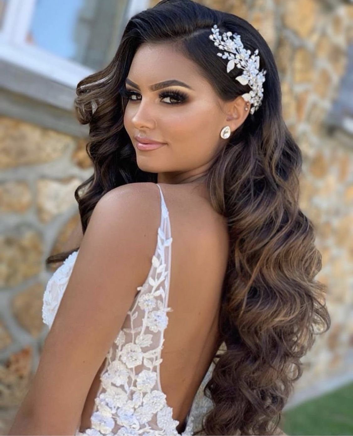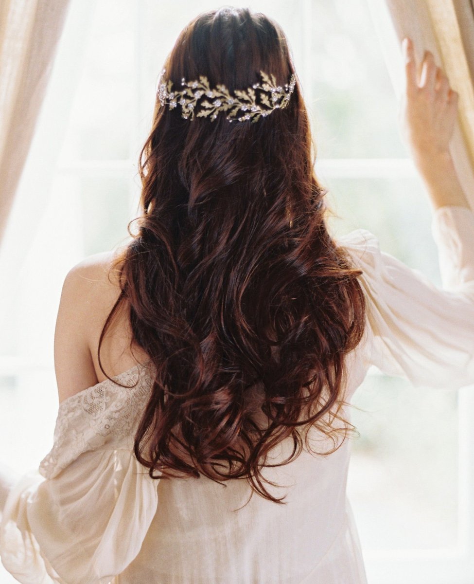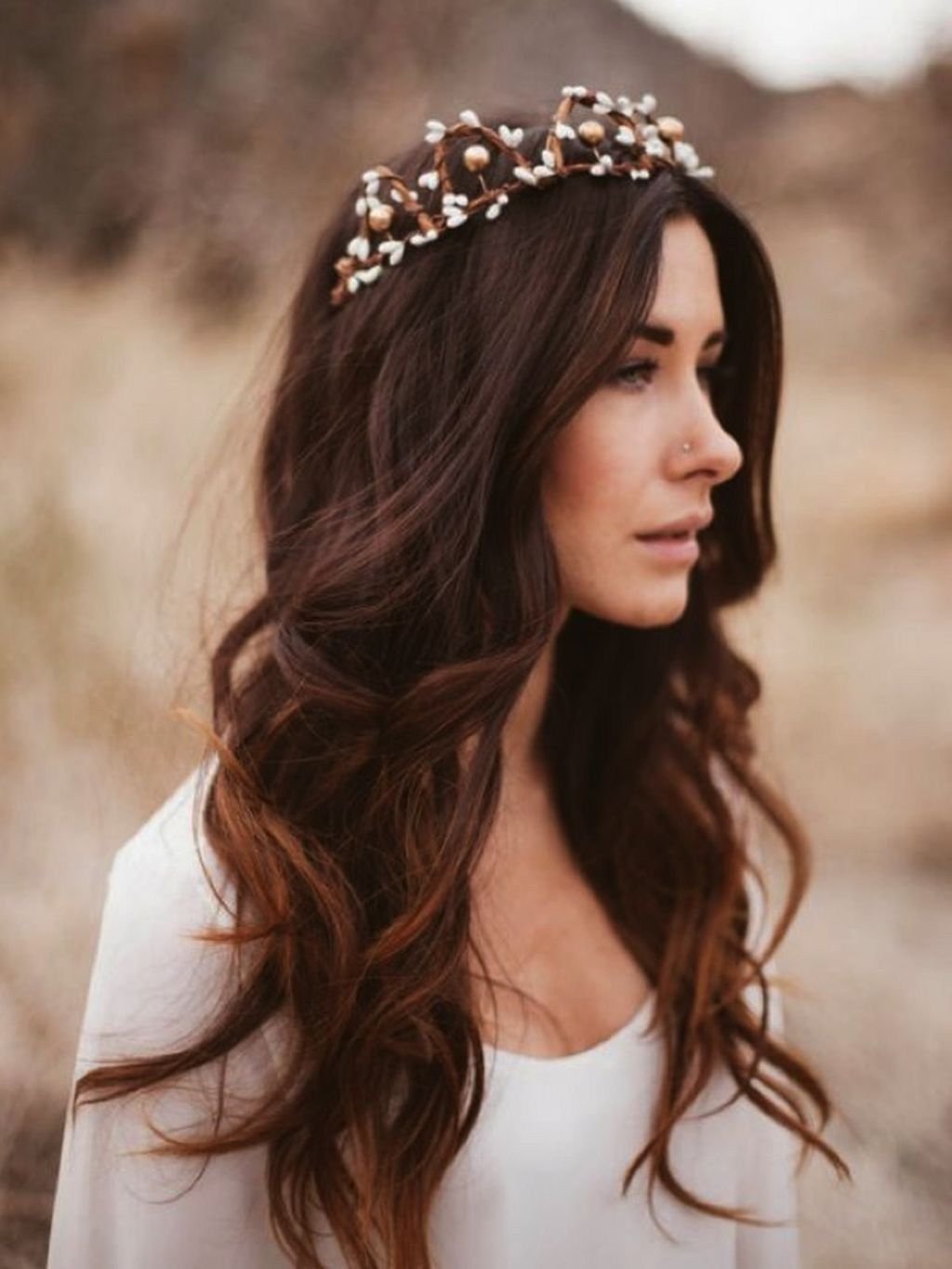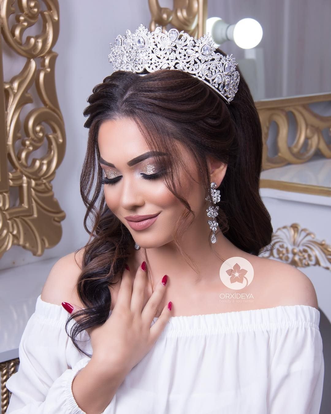 Свадебные причёски с фатой и диадемой распущенные волосы