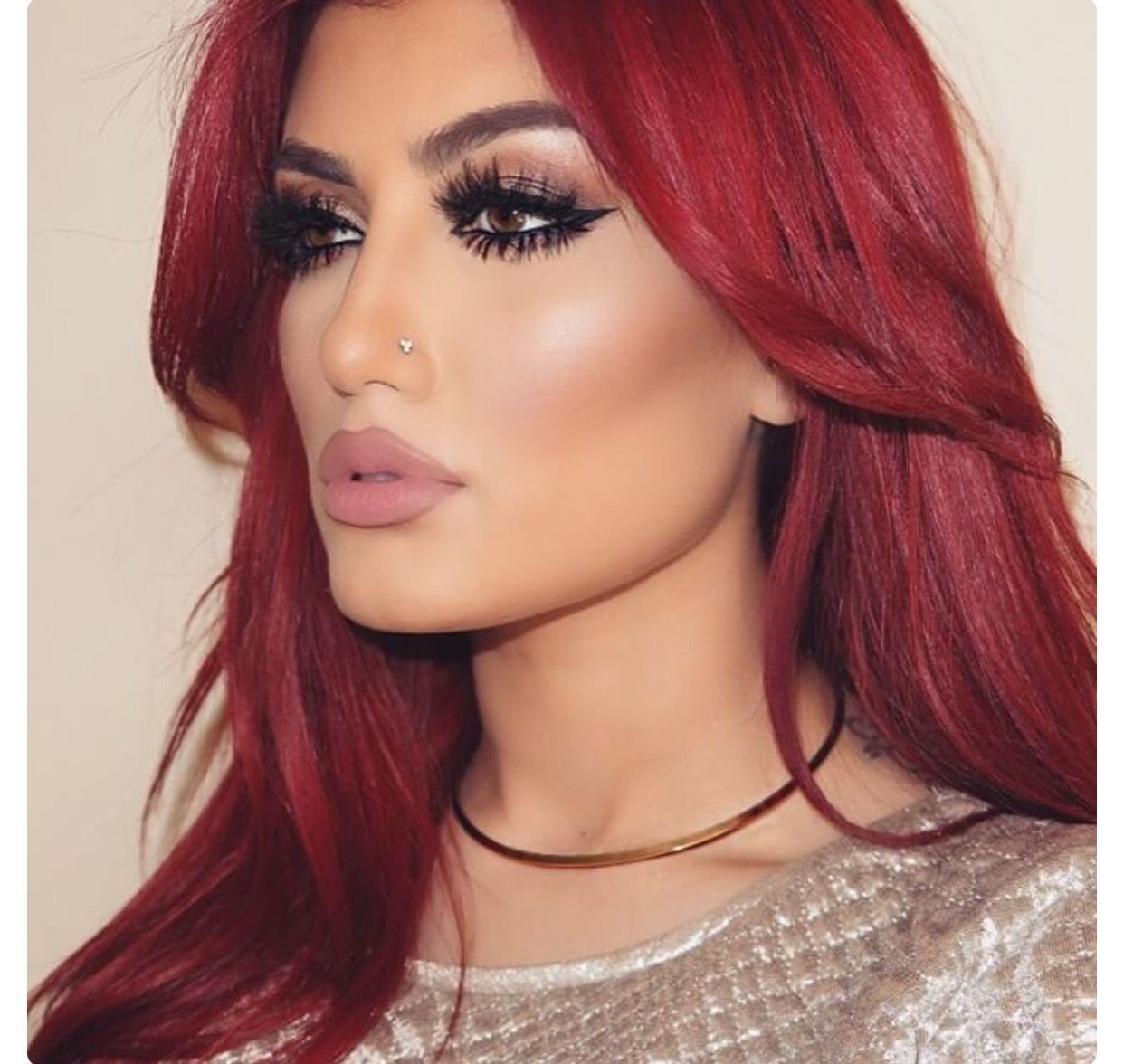 Смуглая девушка с красными волосами