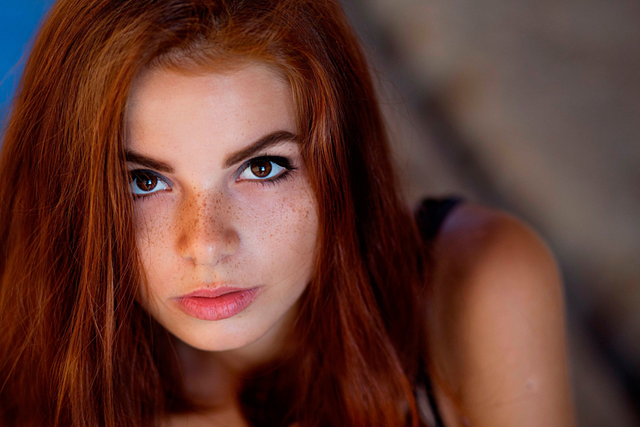 Красный цвет волос с карими глазами