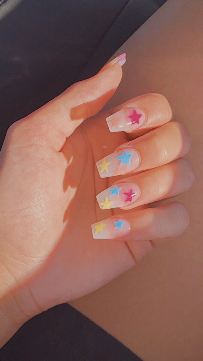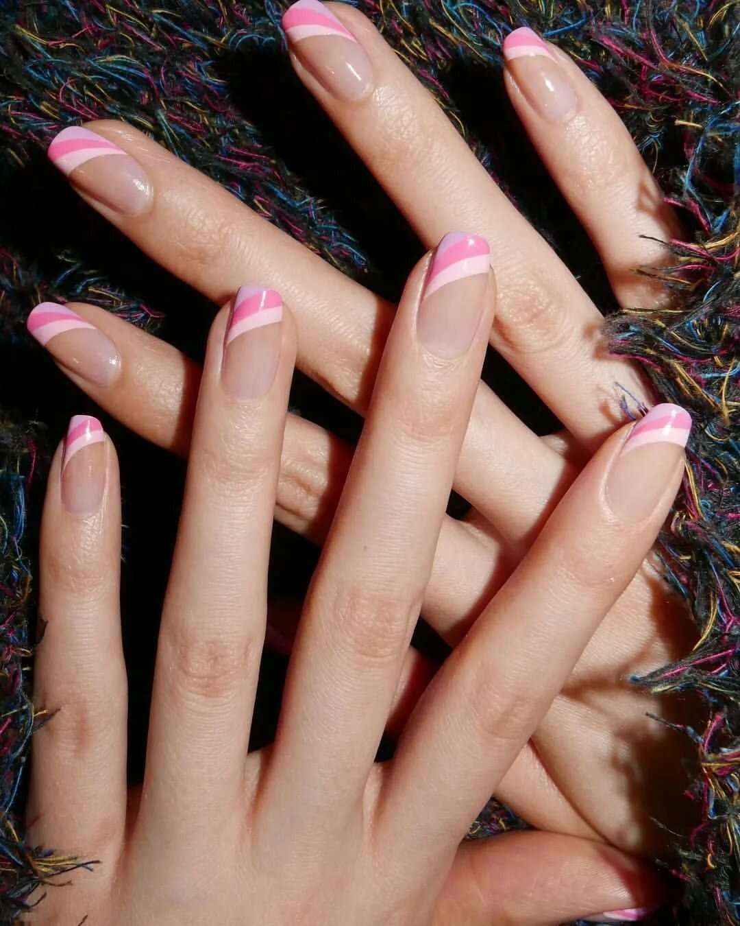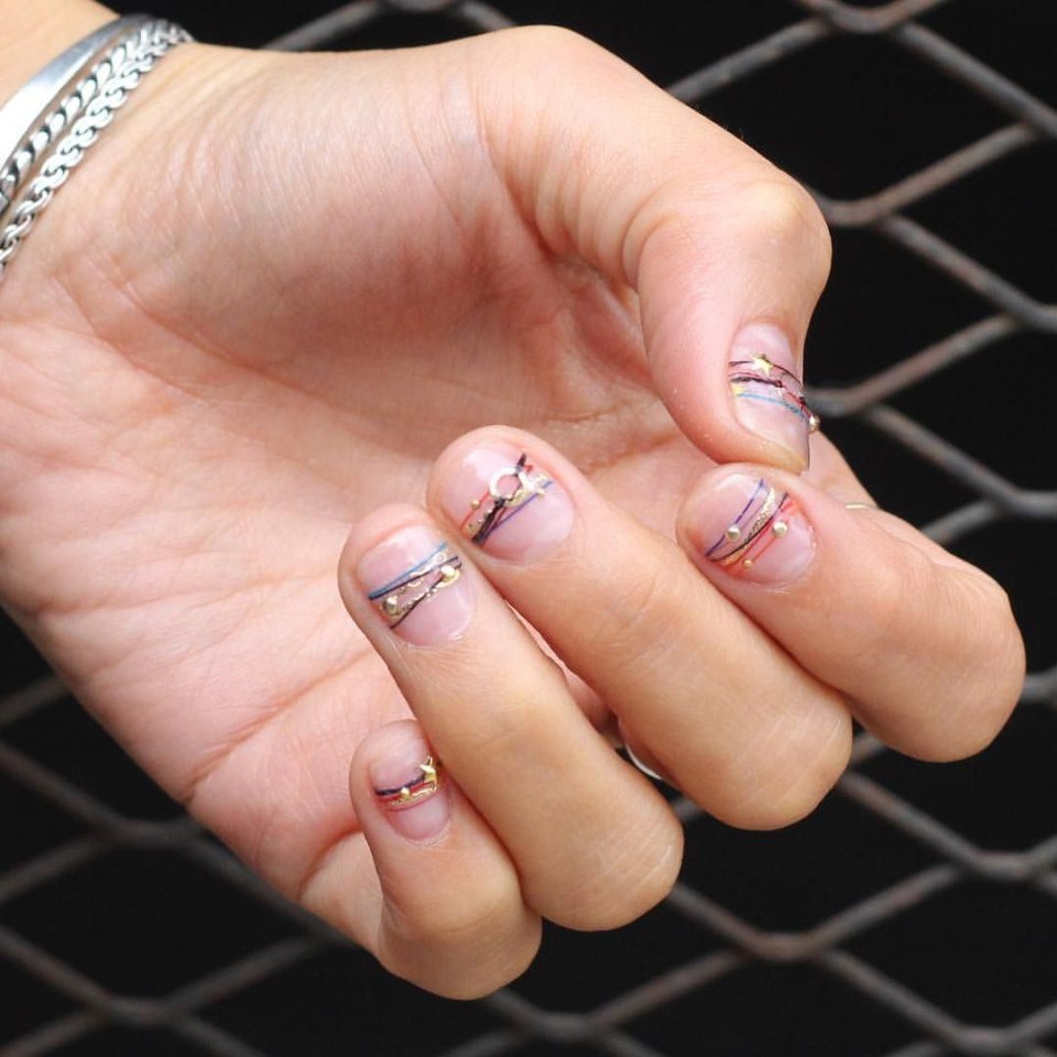 Прозрачный маникюр с разноцветными полосками