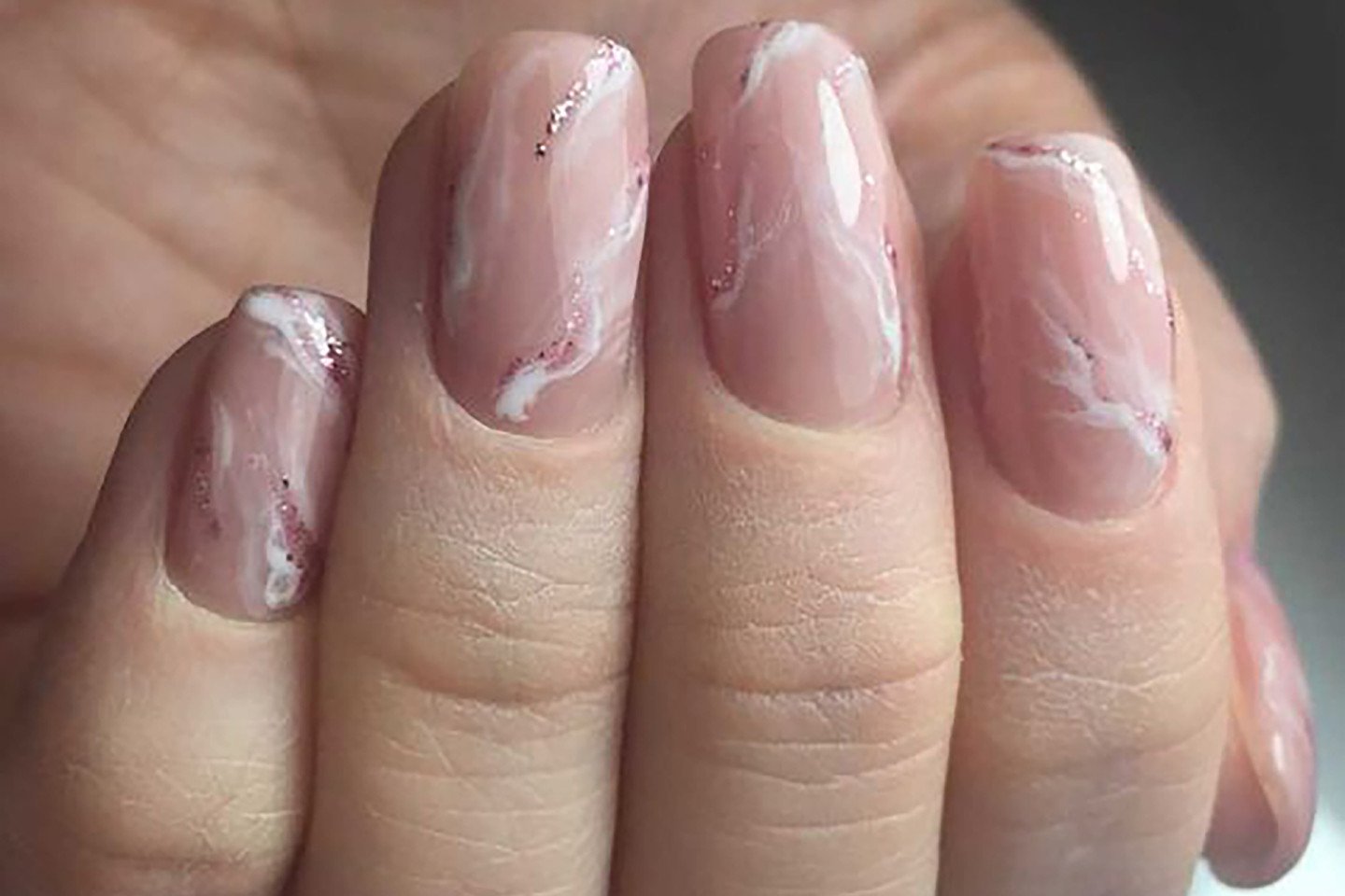 Нюдовый маникюр с мрамором