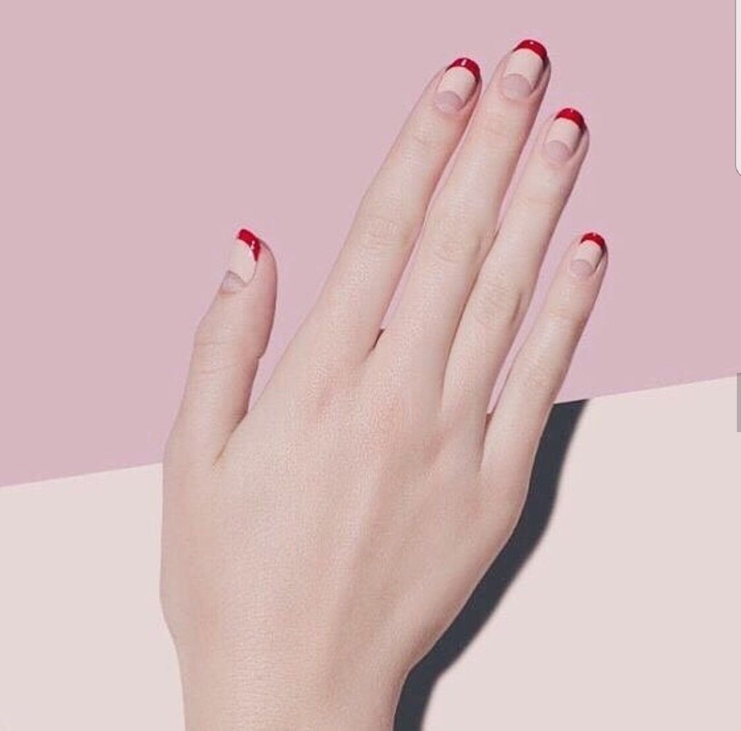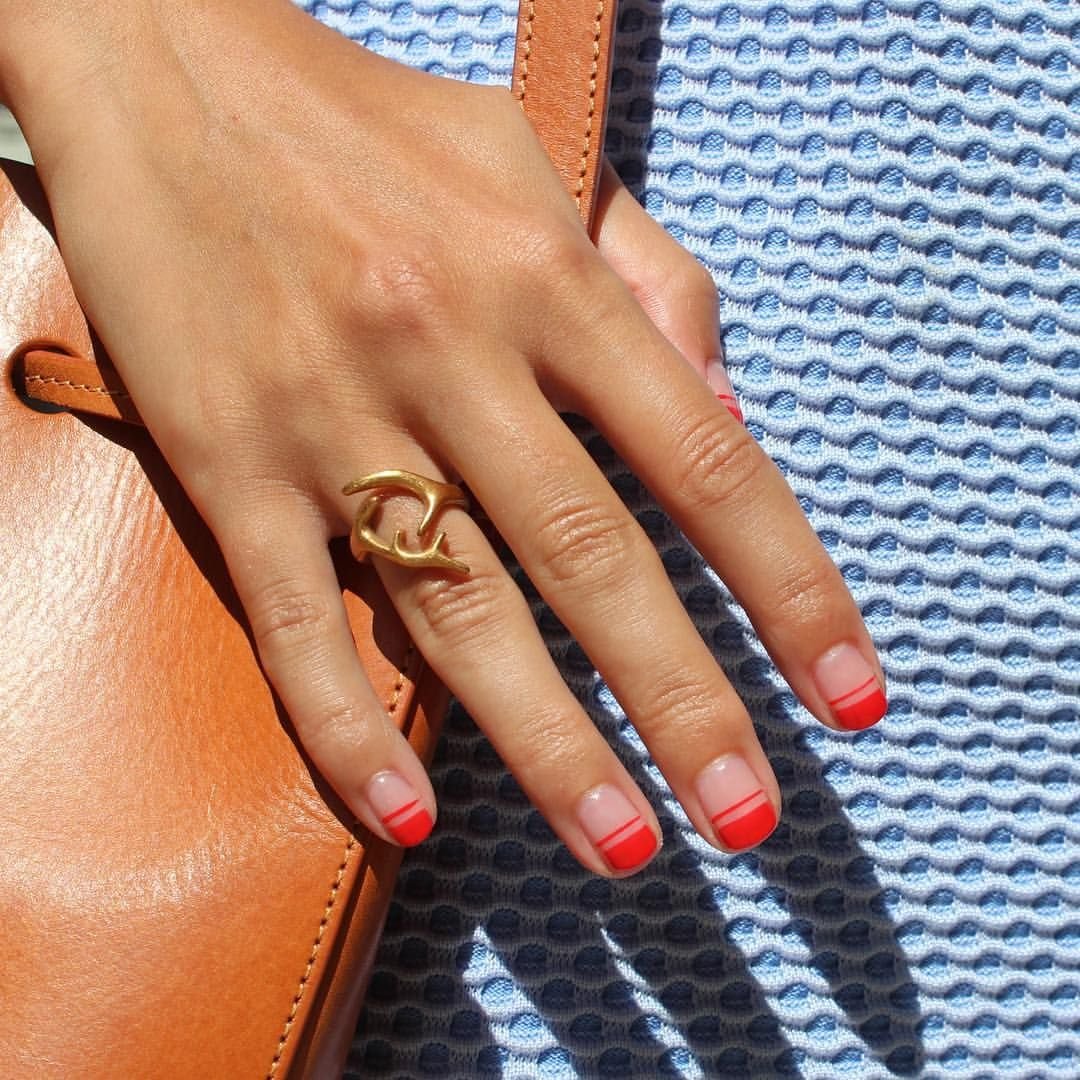 Маникюр френч красный с черными полосками
