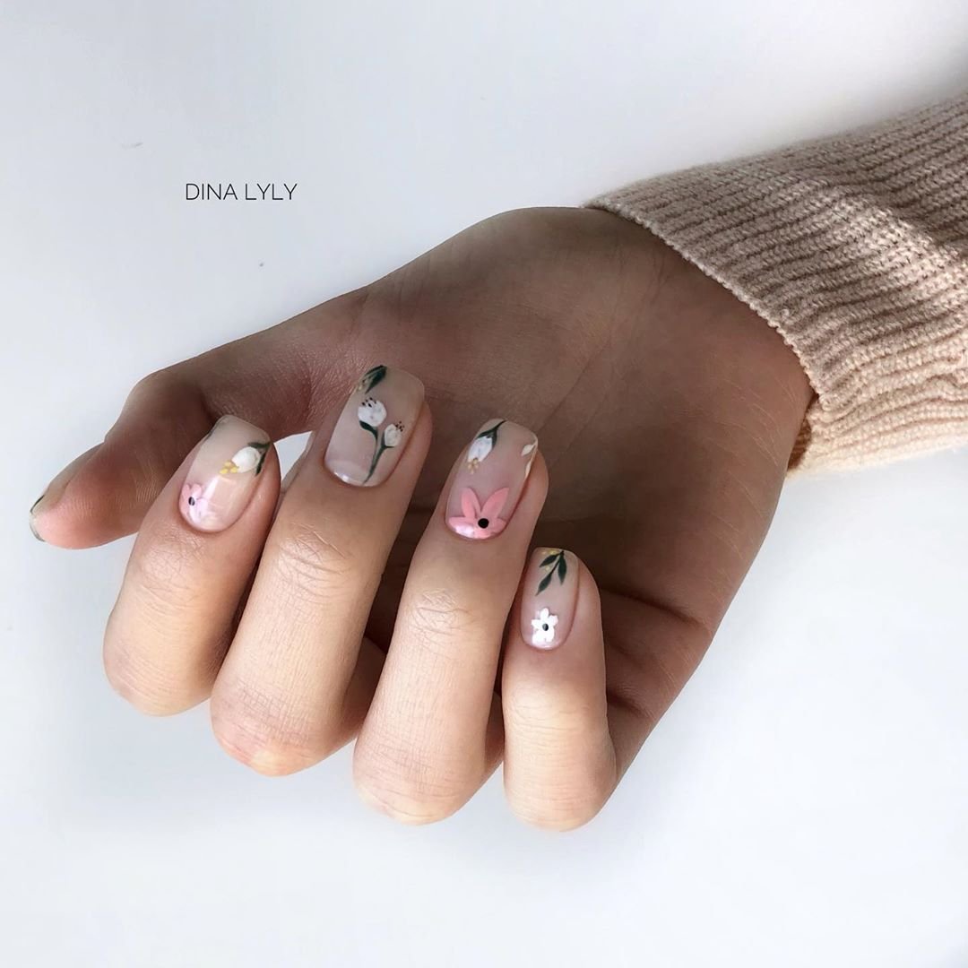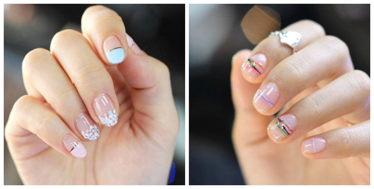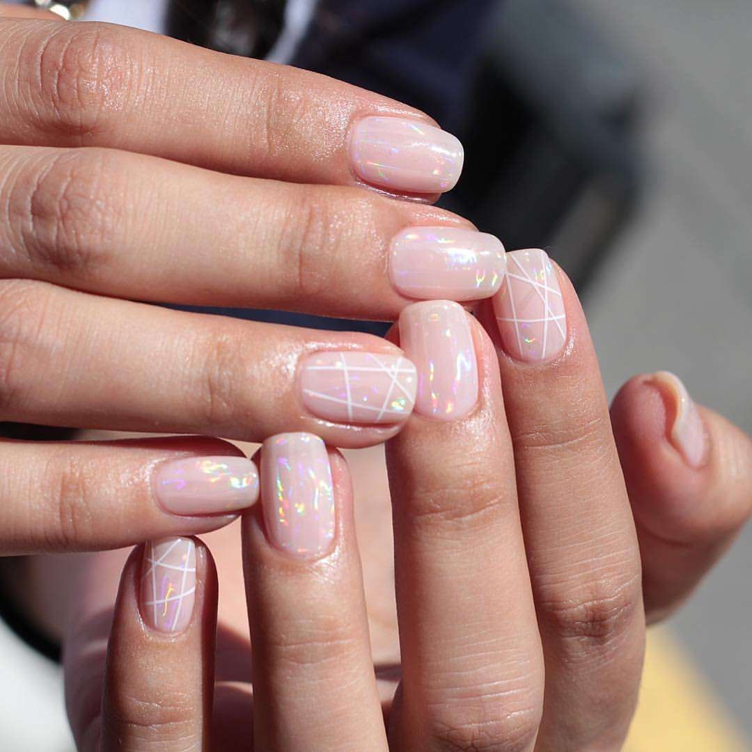 Прозрачный маникюр с паутинкой на короткие ногти