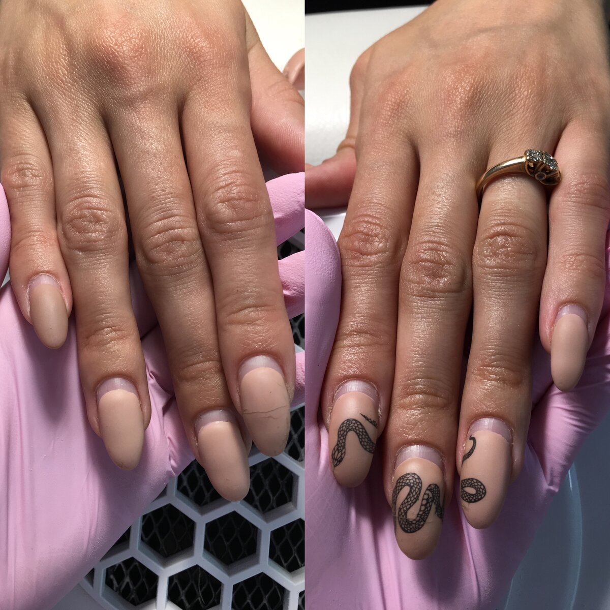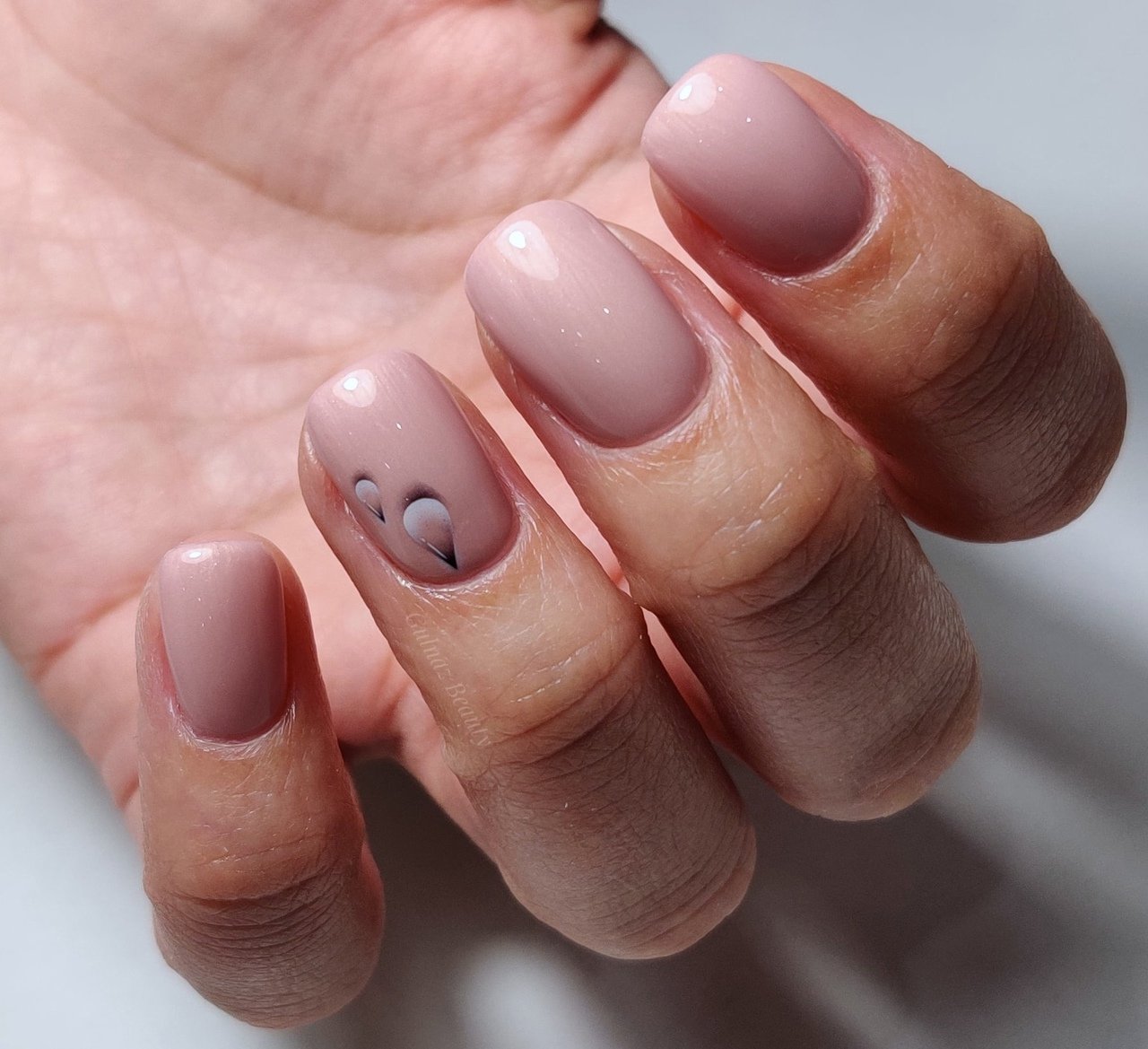 Матовый нюдовый маникюр выделяем один палец