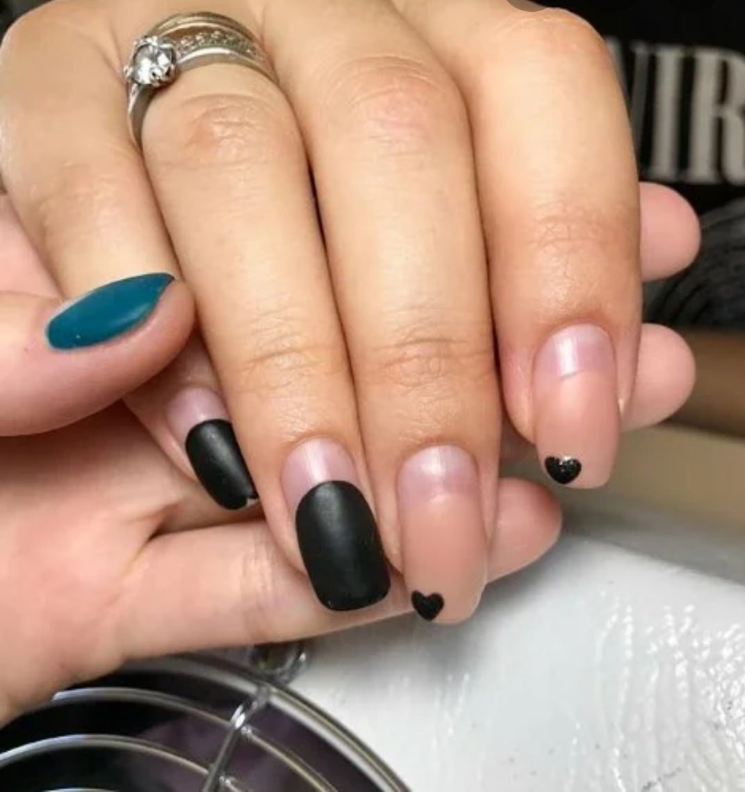 Маникюр под черное платье в горошек