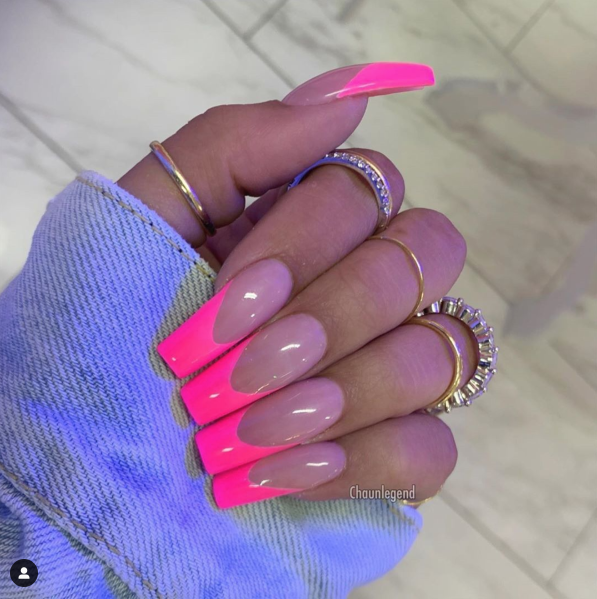 Френч неоновый розовый