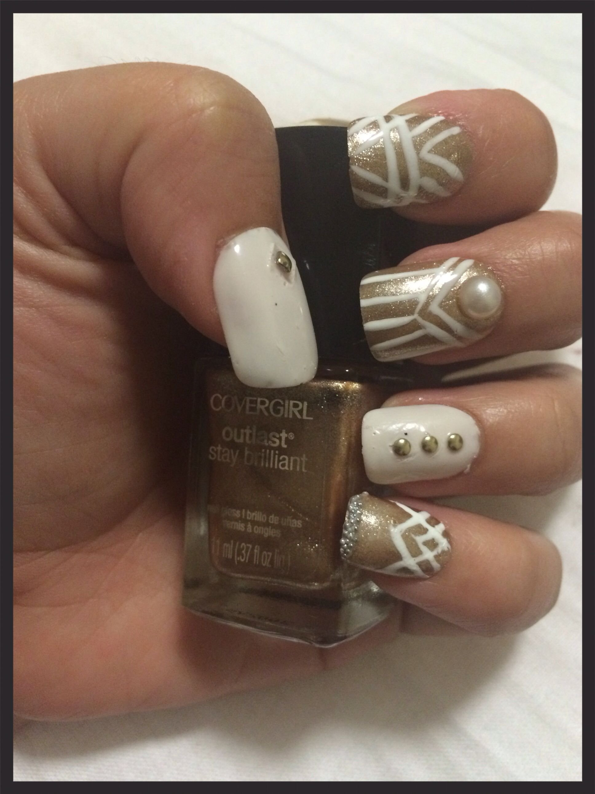 Маникюр геометрия с золотом