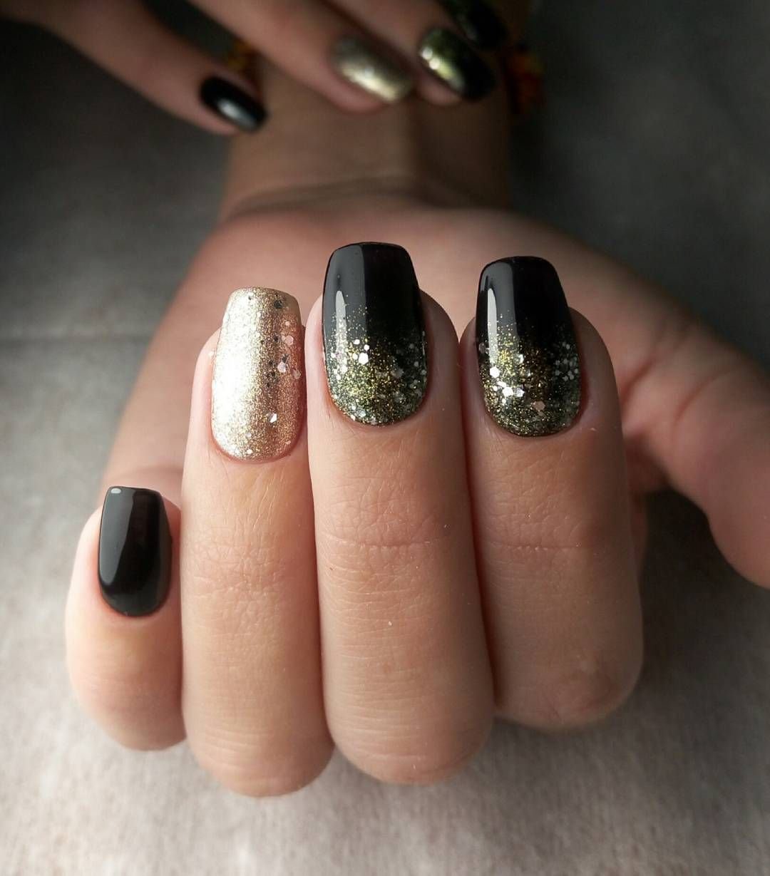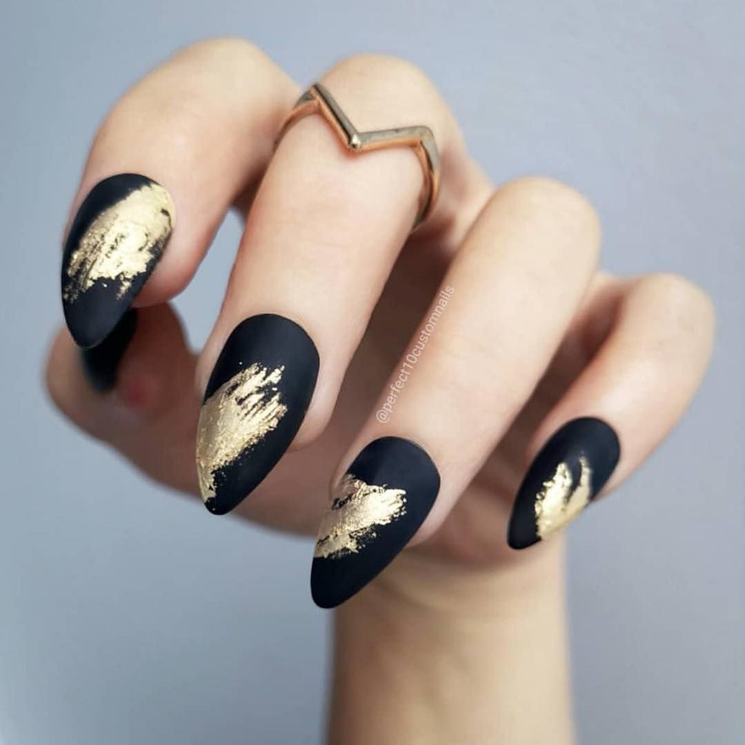 Черно золотой маникюр с полоской