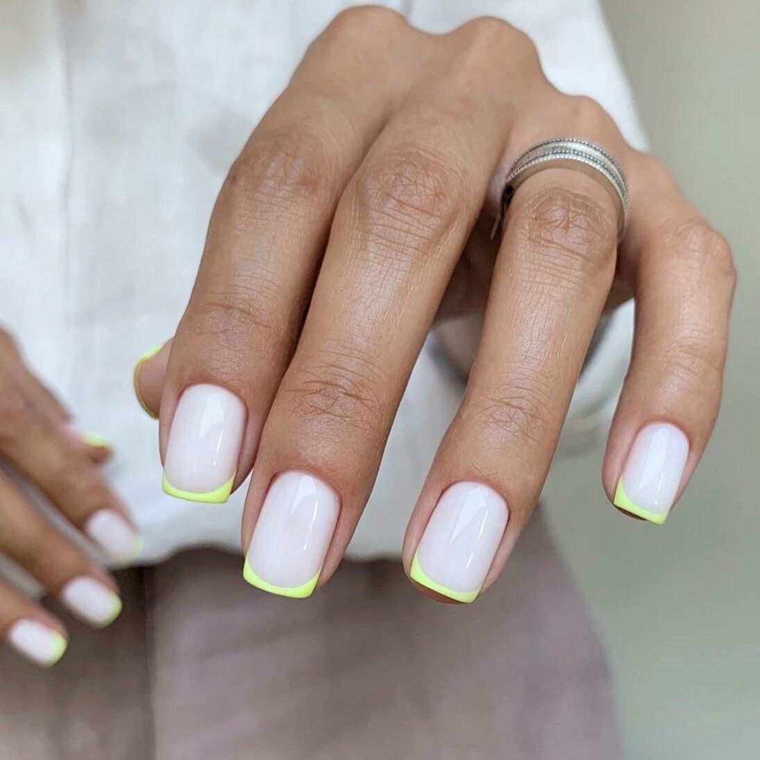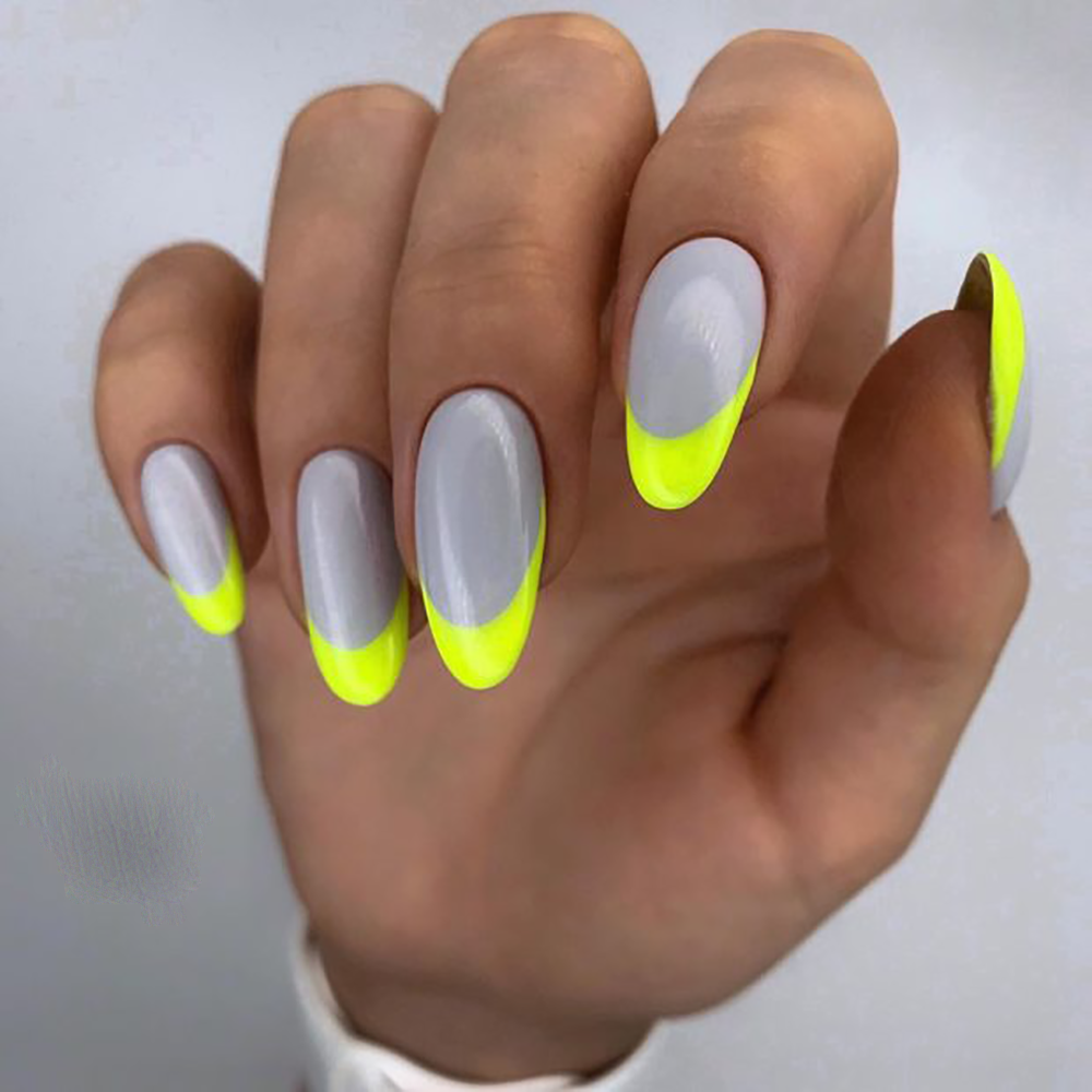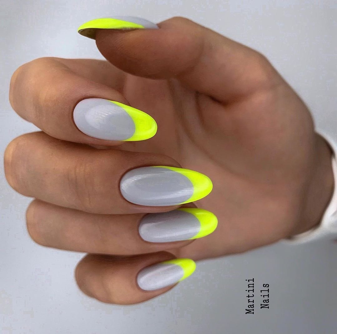 Неон желтый френч короткие ногти