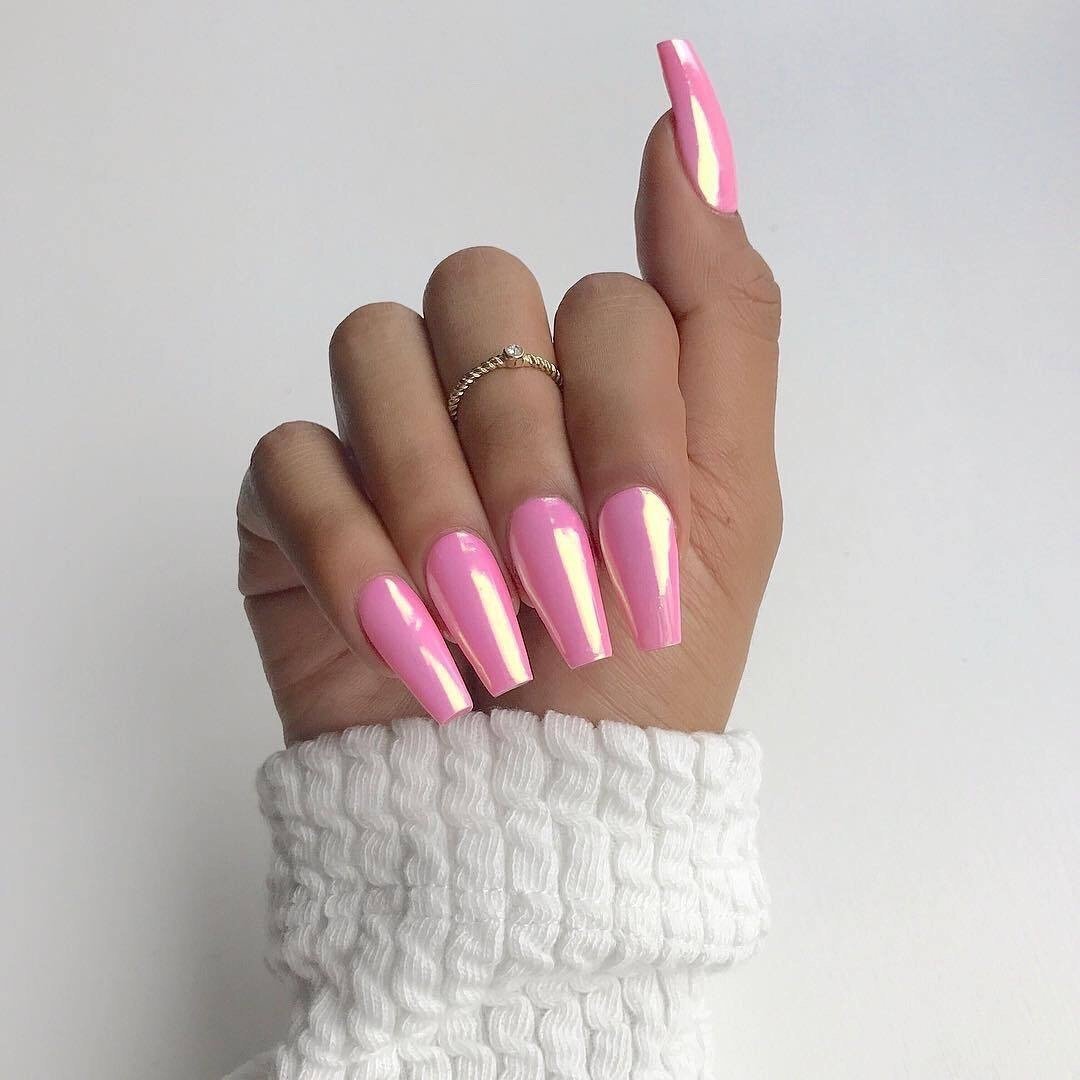 Розовый маникюр на длинные