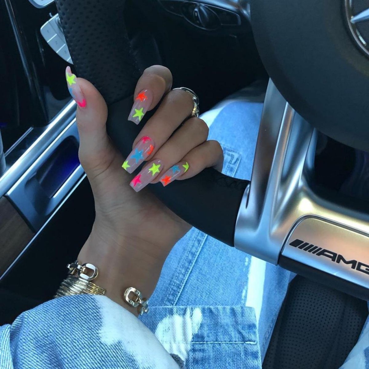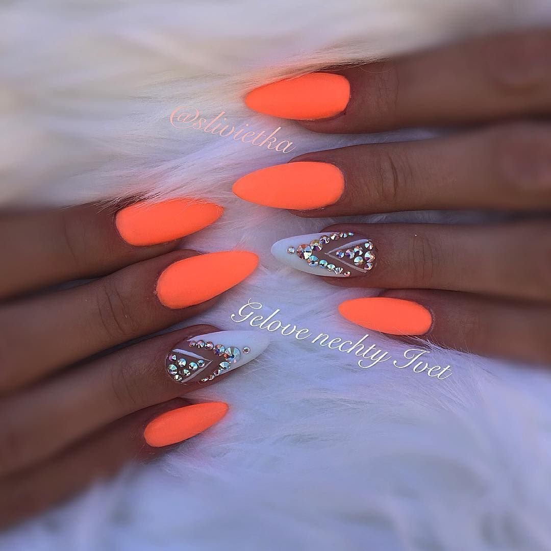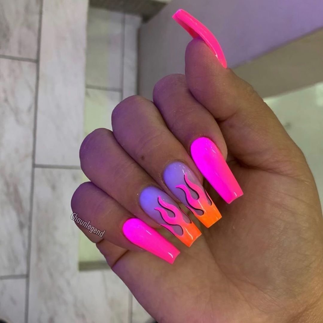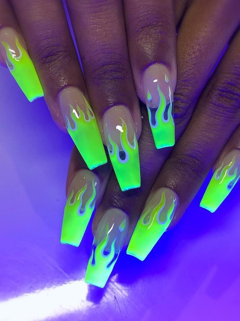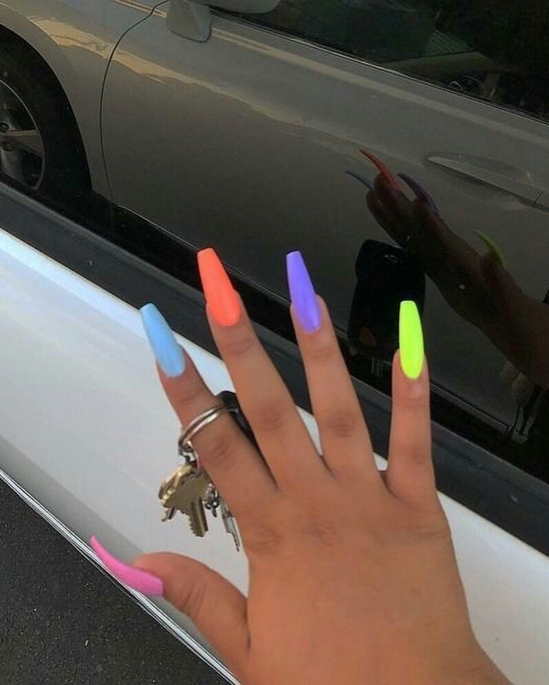 Яркий неоновый маникюр на длинные ногти