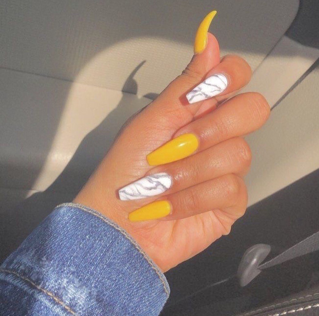 Ярко жёлтые ногти