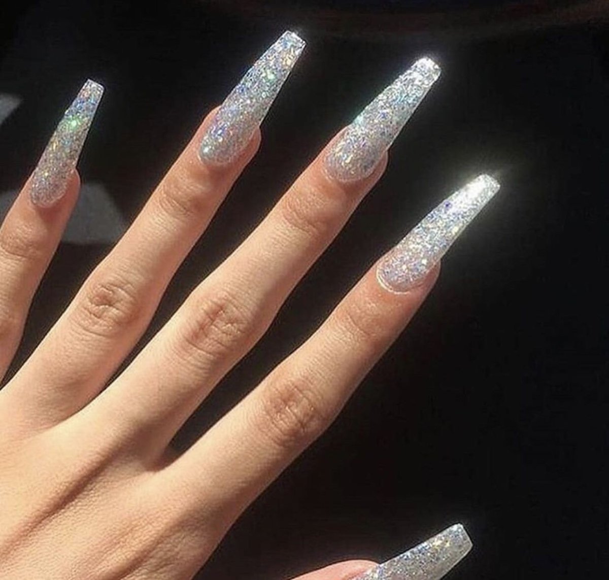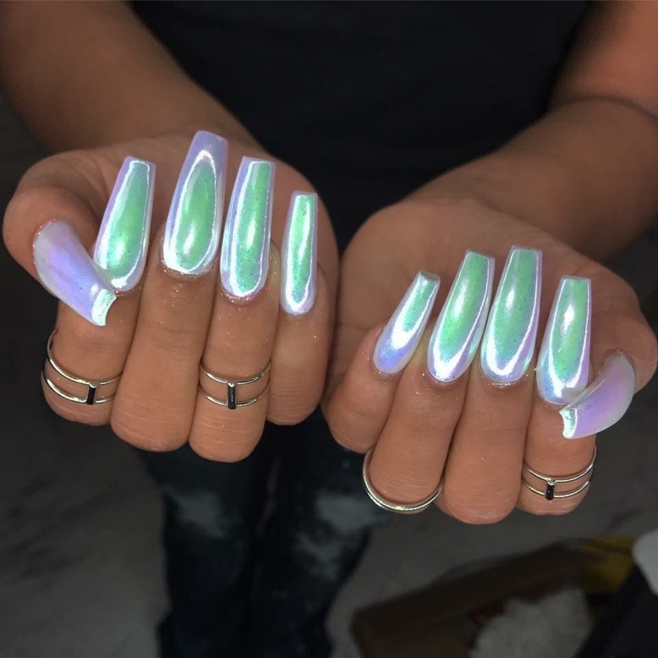 Светоотражающий маникюр на длинные ногти