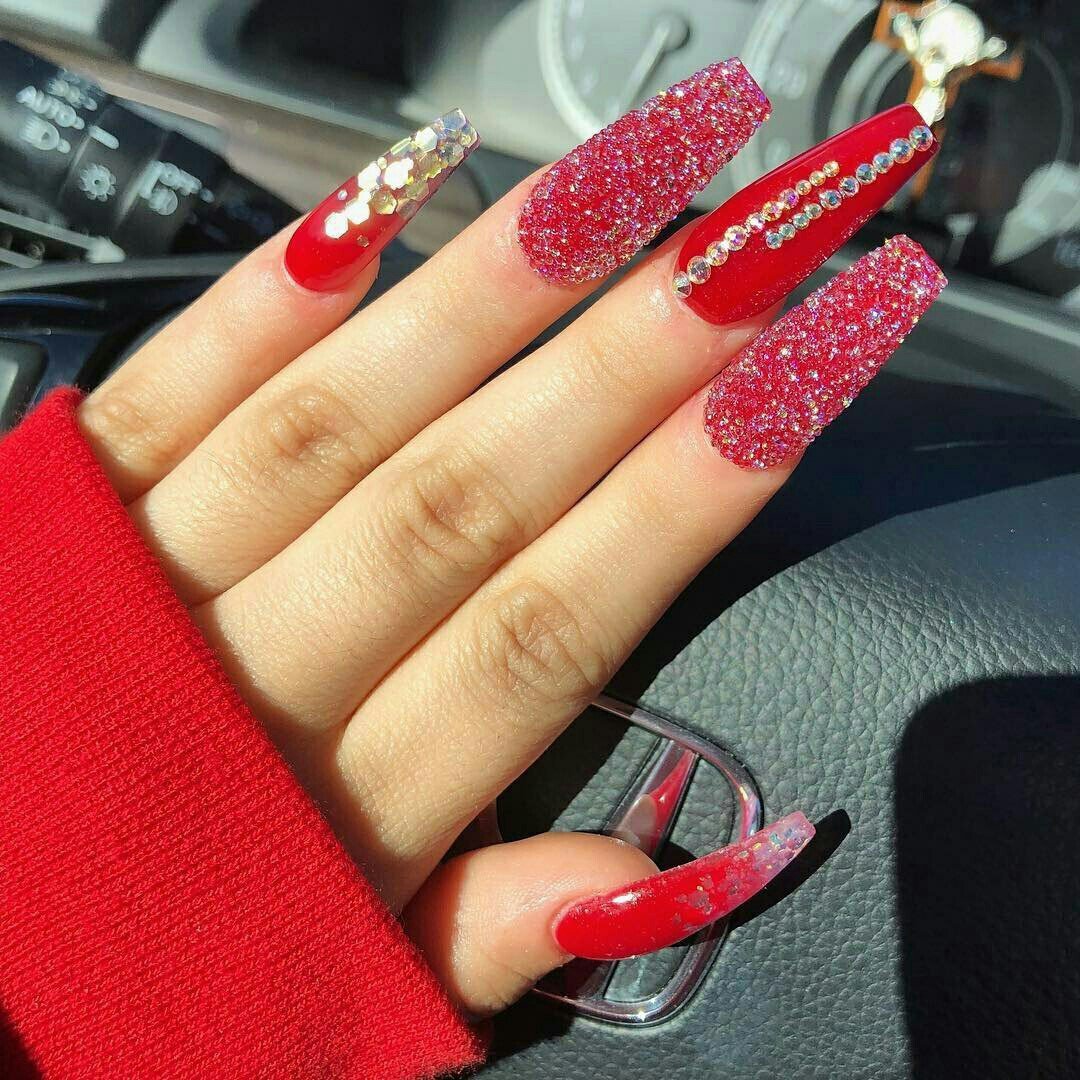 Яркие ногти с блестками