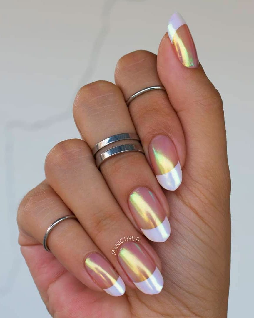 Светоотражающий френч маникюр