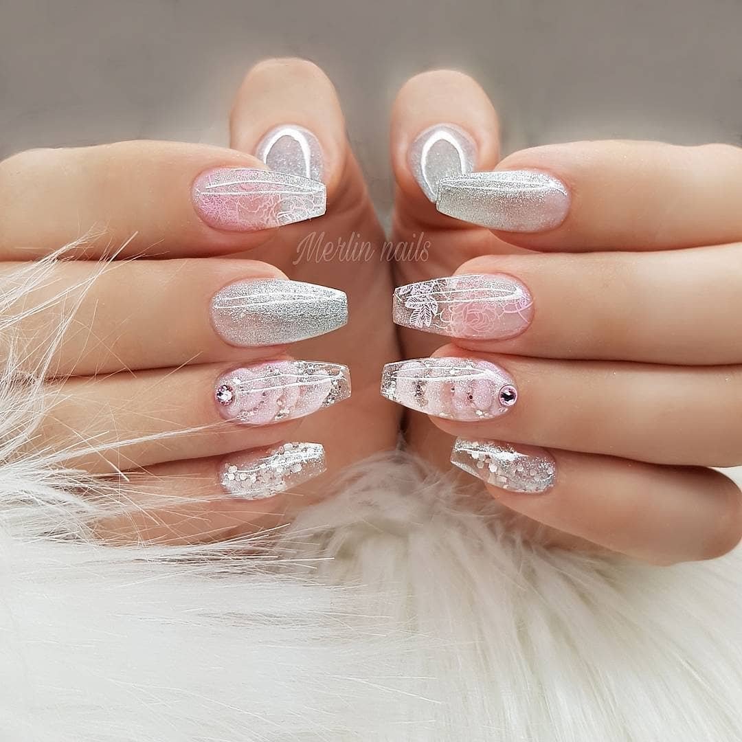 Ногти серебро с золотом