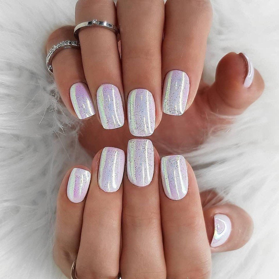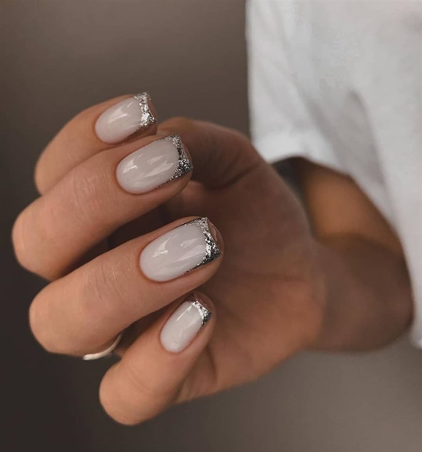 Ногти белые с блестками