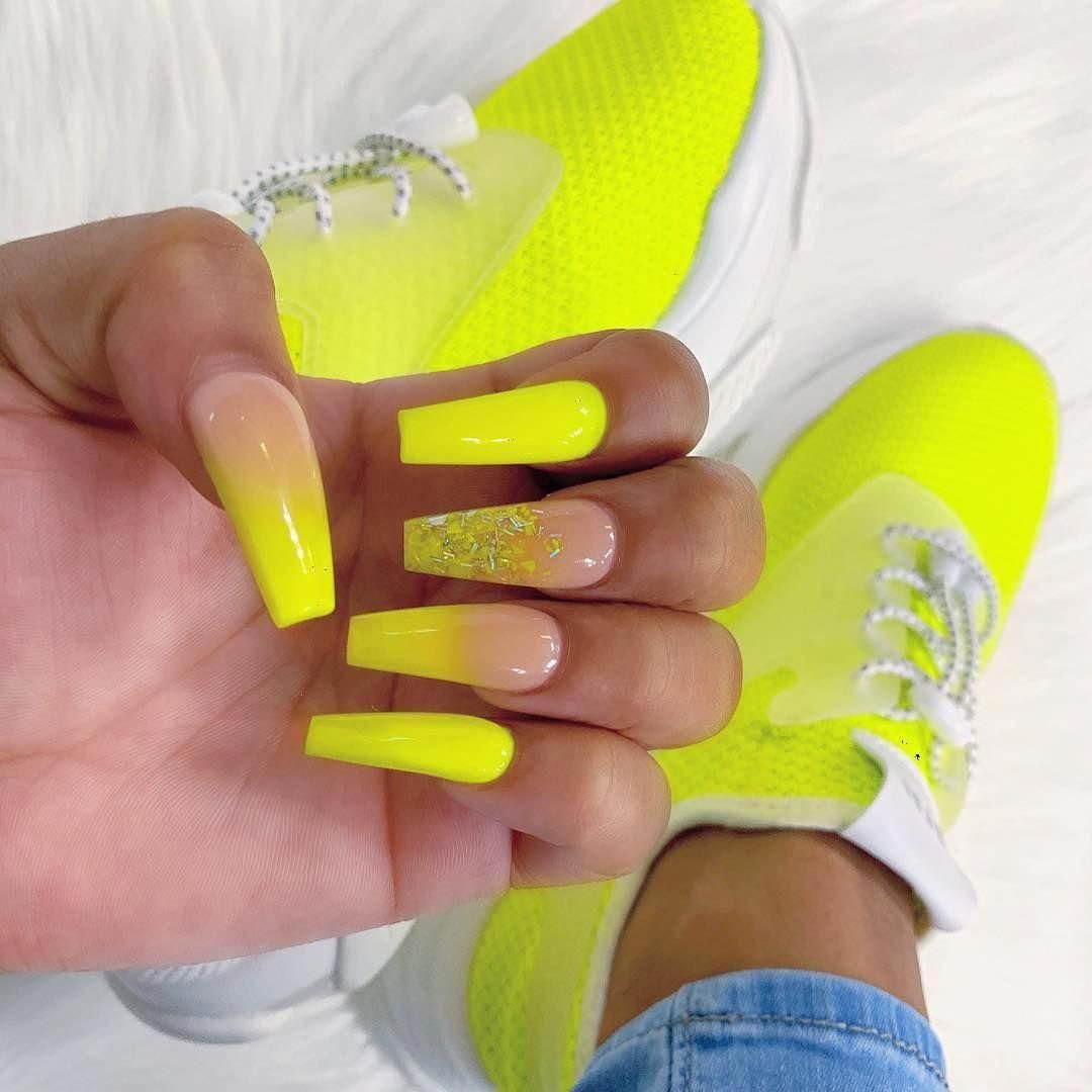 Жёлтые Неоновые ногти маникюр