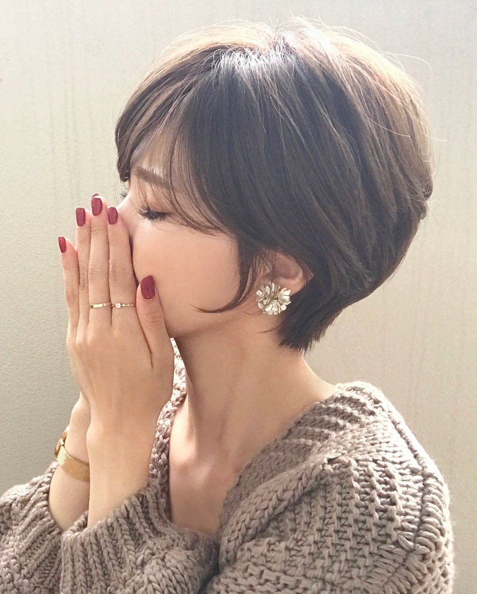 Стрижки Пикси 2021 модные с челкой на темные волосы