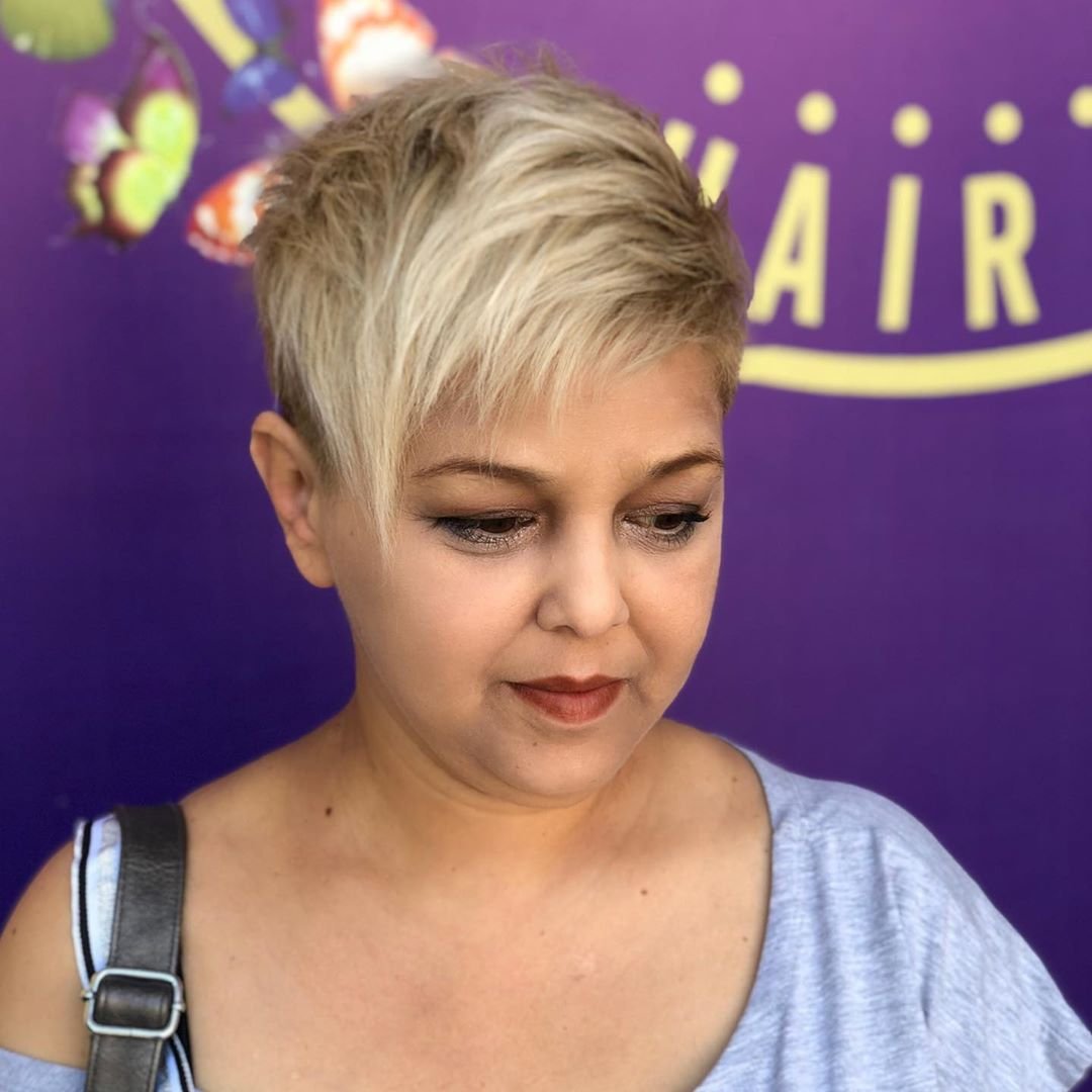 Стрижка Пикси на короткие волосы для полного лица после 50
