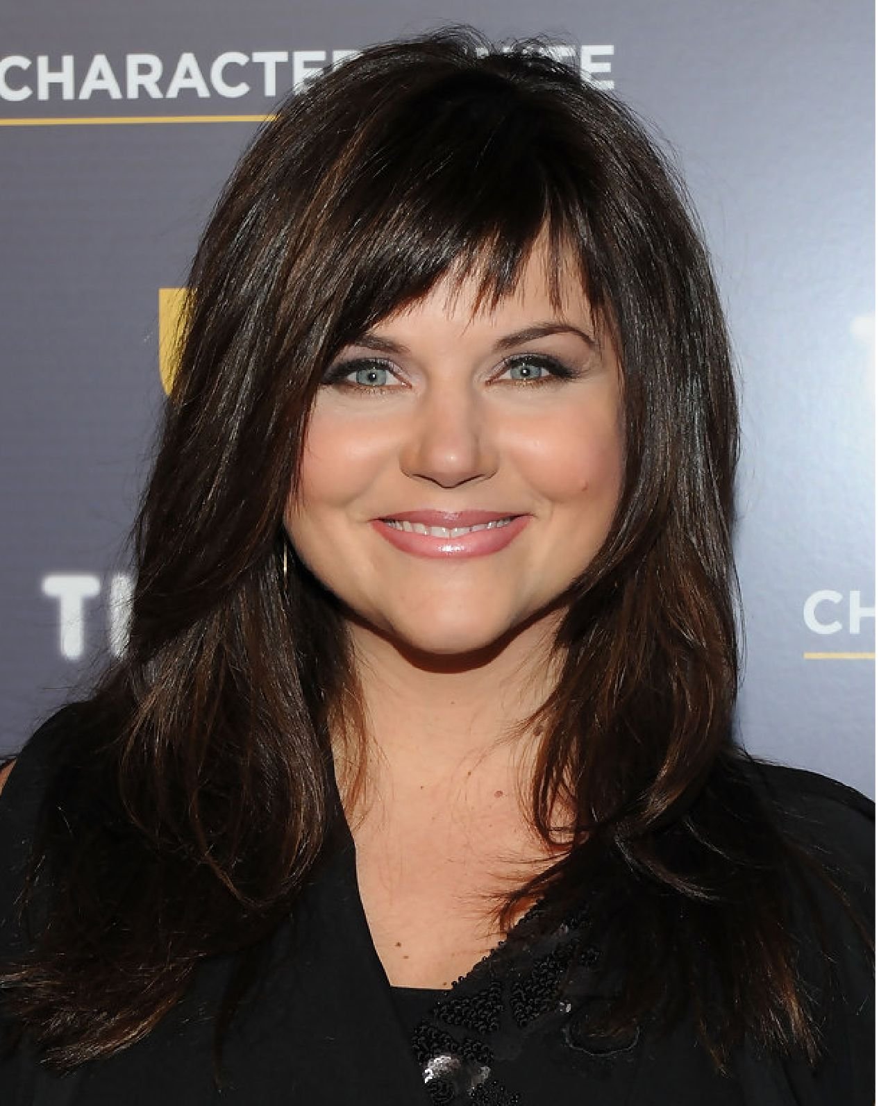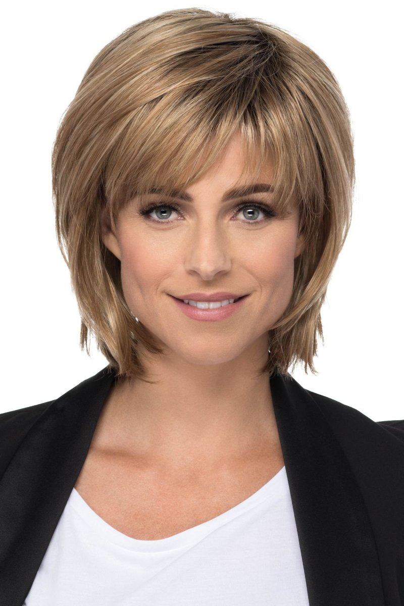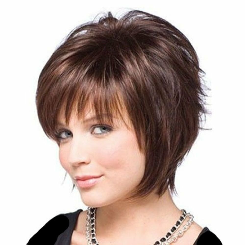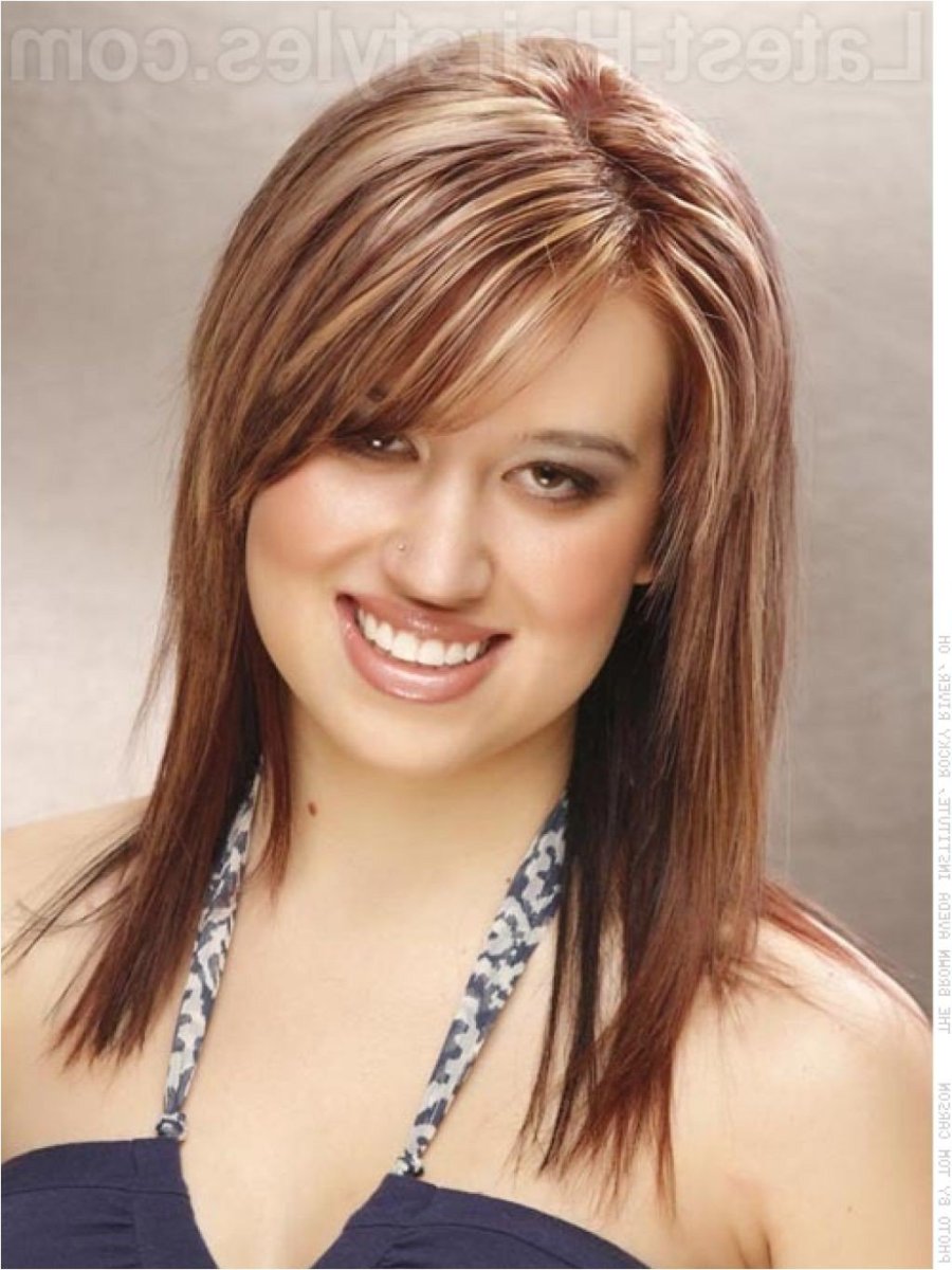 Стильные стрижки Каскад на средние волосы с челкой для круглого лица