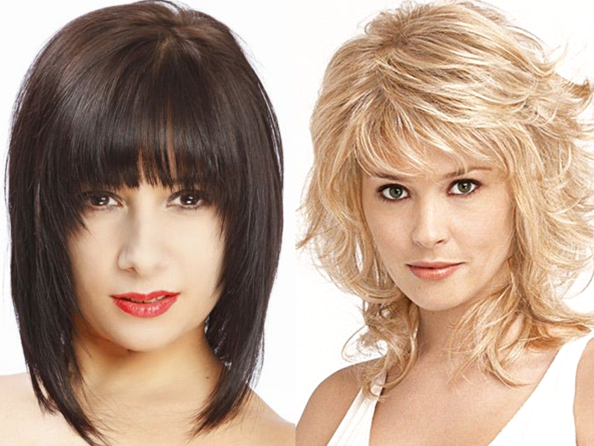 Стрижки женские Каскад на средние волосы с челкой для круглого лица