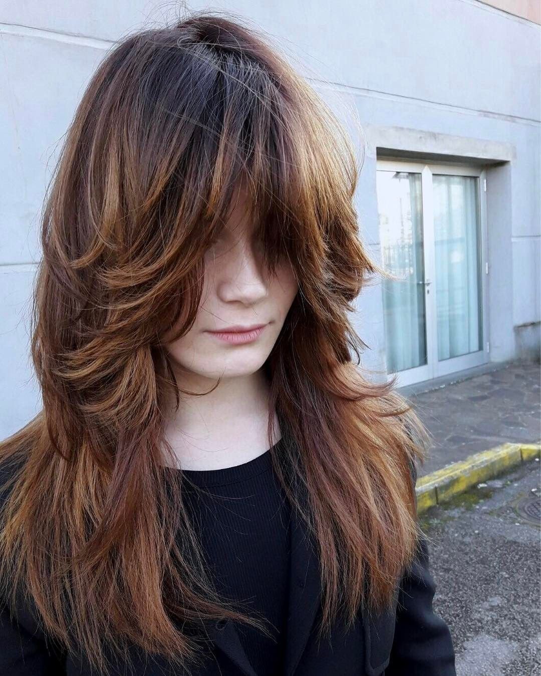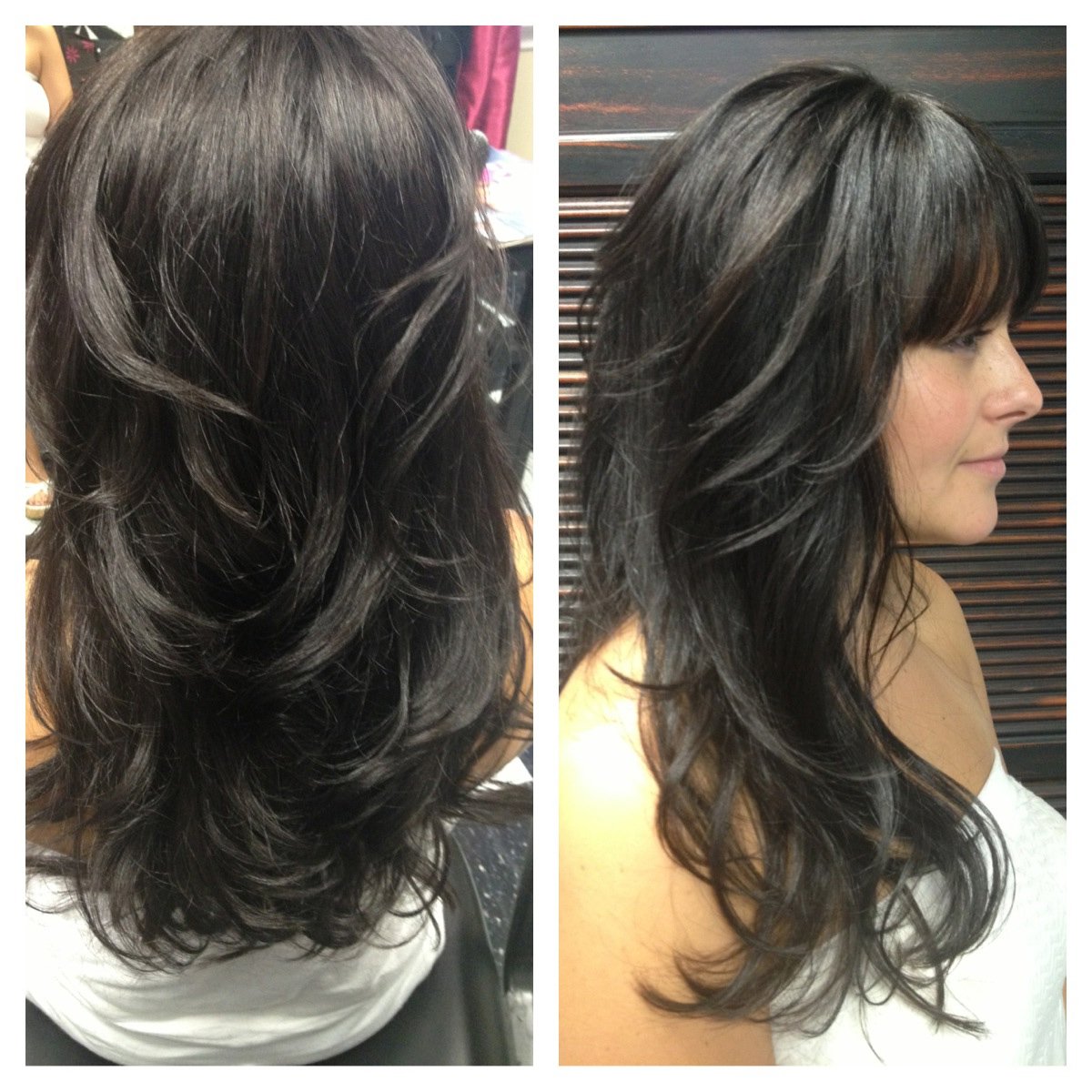 Стрижка слоями на длинные волосы с челкой